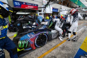 Cependant, à seulement 2h30 de l’arrivée, les deux voitures sont contraintes de rentrer au box pour régler un problème hydraulique. Encore une fois, l’équipe a su montrer tout son talent, comme elle l’a prouvé lors du pitstop challenge plus tôt dans la semaine et qu’elle a remporté. Grâce à ce magnifique travail collectif les deux voitures peuvent repartir et il en sera de même dans la dernière heure de course lorsque la PEUGEOT 9X8 #94 doit retourner au garage pour une intervention sur le moteur.