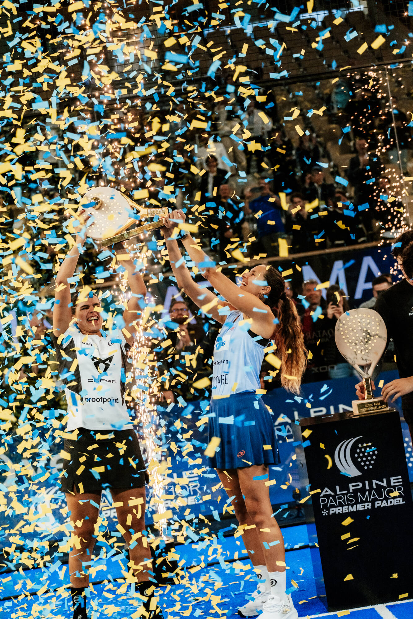 Le DJ a électrisé le public à l’arrivée de Zinedine Zidane dans la stade sur une chanson de Gloria Gaynor. Zinedine Zidane a remis le trophée de l’Alpine Paris Major 2025 à l’équipe féminine Gemma Triay (Espagne) et Delfina Brea (Argentine). Pierre Gasly a remis le trophée aux vainqueurs masculins, Arturo Coello (Espagne) et Agustín Tapia (Argentine), concluant une journée intense d’émotion et de célébration.