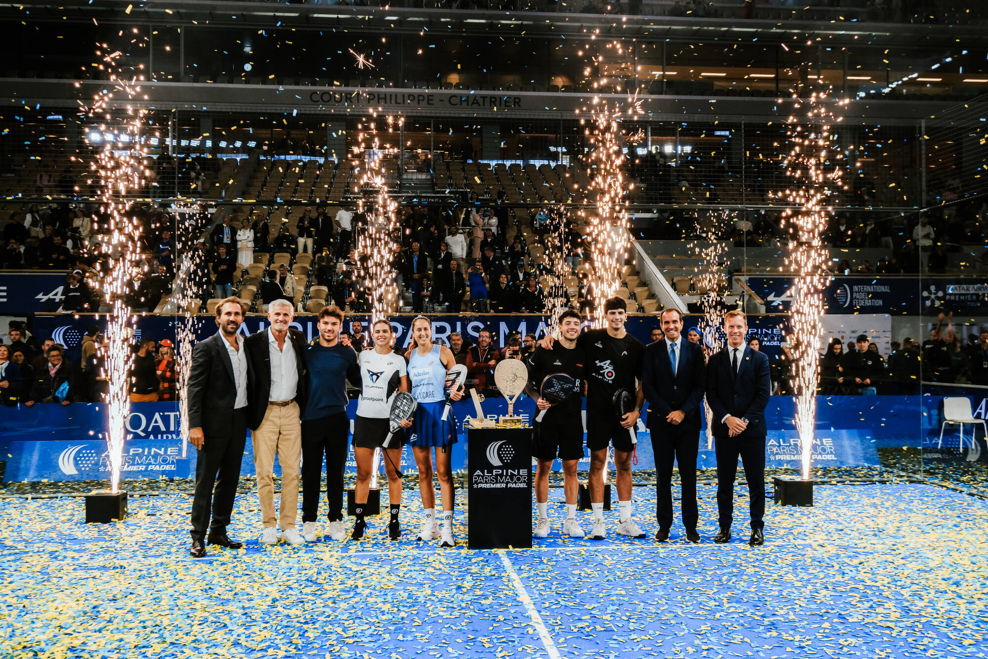 • Dimanche 14 septembre, Zinedine Zidane et Pierre Gasly ont respectivement remis les trophées de l’Alpine Paris Major 2025 à l’équipe féminine Gemma Triay/Delfina Brea et au duo masculin Arturo Coello/Agustín Tapia.