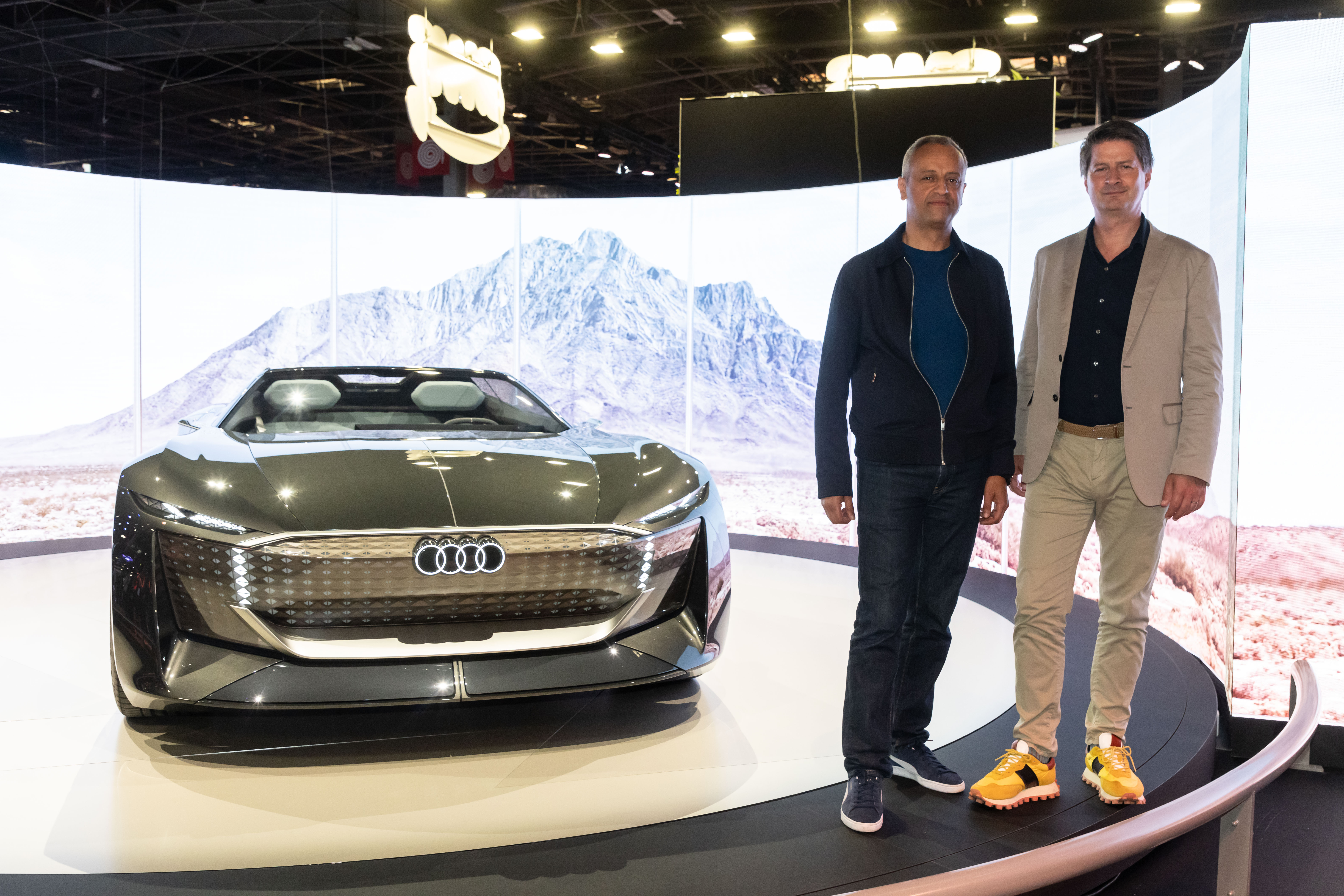 Lors de la cérémonie d’ouverture, Lahouari BENNAOUM, Directeur Général Audi France et Gaël BUZYN, Directeur du Studio de Design Audi de Malibu, ont dévoilé l’Audi skysphere concept sur la « Stage 1 » de VivaTech, ainsi que les chantiers du constructeur en matière d’innovation technologique et écologique.