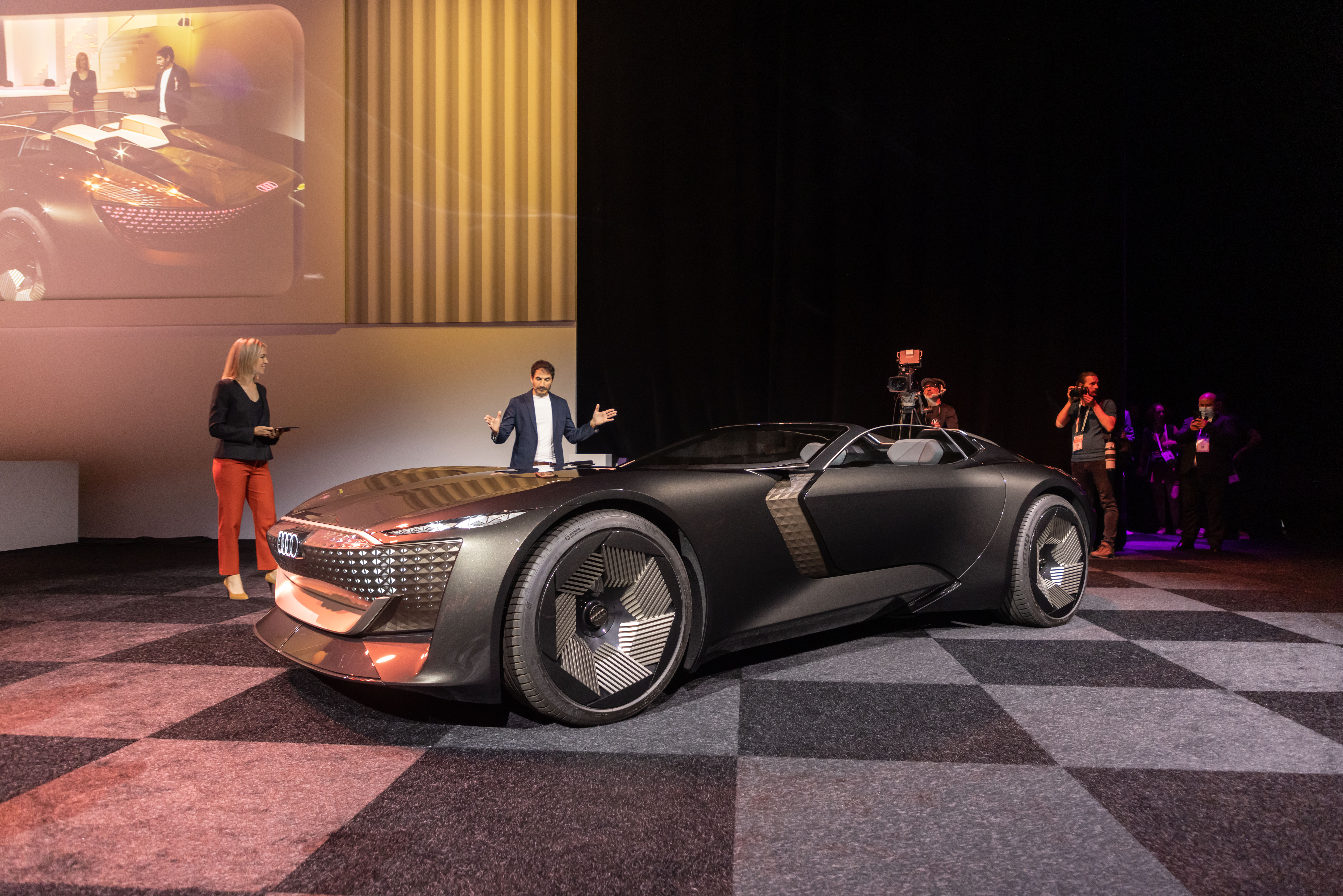 Les présentations de l’Audi skysphere concept se sont succédées auprès des différentes cibles, illustrant ainsi l’avenir de la mobilité par Audi : conduite autonome, connectivité avec l’environnement, offre servicielle, expériences à bord, sportivité, sécurité, éco-responsabilité, nouvelles méthodes de travail, toutes les thématiques du plan de transformation du constructeur ont été résumées dans ce concept-car audacieux au design et aux aspects technologiques sans précédent.