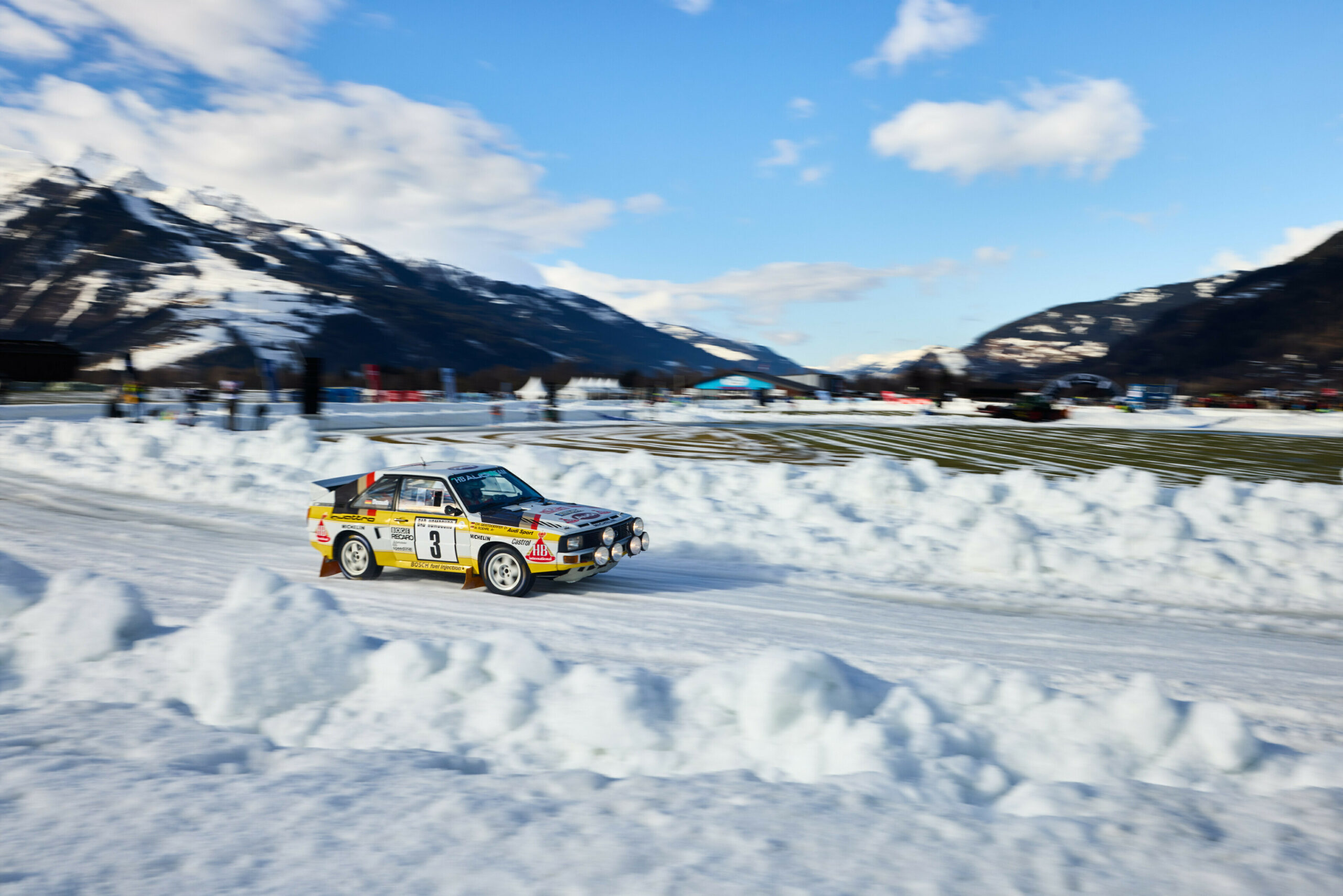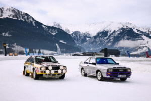 Les activations sur glace se poursuivront trois semaines plus tard à Saint-Moritz, lors du concours d’élégance I.C.E. (21-22 février), où Tom Kristensen présentera l’Audi quattro Group S, construite en 1986, sur le lac gelé de Saint-Moritz. Le développement de cette voiture de rallye spéciale a commencé dès 1985. Elle est dotée d’un châssis tubulaire, d’une carrosserie en plastique et d’un moteur turbocompressé à quatre soupapes en configuration moteur central. Elle était destinée à être utilisée dans la catégorie de rallye Groupe S prévue à partir de 1987, mais elle n’a finalement pas été utilisée.