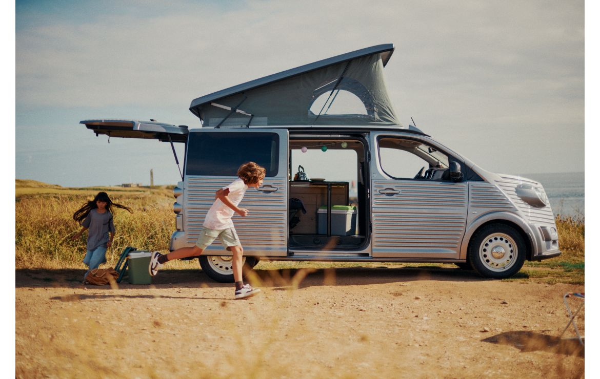 Une légitimité reconnue dans l’univers du loisir qui fait de Citroën un acteur incontournable du marché, Citroën étant le 2ème fournisseur de véhicules de bases de camping-cars en Europe. Et un héritage que Citroën a voulu mettre en avant en présentant un SpaceTourer reprenant l’habit d’un Type H grâce au travail du carrossier italien Caselani. Ce fidèle partenaire de Citroën propose déjà plusieurs carrosseries « néo-rétro » pour des modèles de la marque. La « van life », c’est une façon différente de voyager. Alors avec un véhicule vraiment différent des autres comme le teaser Type Holidays, le plaisir sera total. Son design unique, tout comme sa couleur grise, est un clin d’œil au mythique Type H de Citroën, le fameux « Tube ».