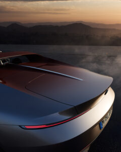 L’harmonie des couleurs assure une transition visuelle harmonieuse entre l’intérieur et l’extérieur, que la capote soit ouverte ou fermée. À l’arrière de la voiture, le ton brun-rouge du toit se fond dans la peinture extérieure Floating Sundown Silver, dont l’effet d’ombre chromée lui confère un impact visuel impressionnant. Le dégradé de couleurs élaboré a été appliqué à la main par des maîtres peintres expérimentés.