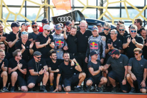 « C’était une compétition sportive qui a duré trois ans. Aujourd’hui, nous sommes entrés dans l’histoire avec ce concept et l’avons emporté sur les anciens systèmes de propulsion. Cela montre qu’Audi a une longueur d’avance sur la concurrence. Ce concept de propulsion électrique, que nous avons mis trois ans à améliorer, était exactement ce qu’il fallait. La compétition a été extrêmement passionnante. Les derniers jours du rallye ont été particulièrement difficiles. Nous sommes très soulagés de la victoire de Carlos et Lucas. Lorsque Sébastien Loeb s’est rapproché de plus en plus près ces derniers jours, j’étais nerveux. Ce n’est que lorsque le vent a tourné, l’avant-dernier jour que je me suis un peu plus détendu. Le travail d’équipe a parfaitement fonctionné pour nous. L’esprit était tout simplement bon. Avec de telles personnes, on peut gagner. »