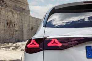 L’élément le plus frappant de la face avant est la calandre à deux lamelles de style SUV en argent iridium avec une étoile intégrée au centre et un motif Mercedes-Benz. Le pare-chocs avant distinctif, ainsi que l’habillage chromé brillant du pare-chocs inférieur, contribuent également à l’aspect robuste de la voiture.