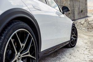 Par rapport à la Classe E Break classique, le modèle All-Terrain est plus grand en termes de hauteur. Il a pratiquement la même longueur et mesure au total 4 950 millimètres. La largeur est de 1 904 millimètres et la hauteur de 1 497 millimètres. La taille standard des pneus est de 235/55 R 18 sur des roues de 8 J x 18. Des roues allant jusqu’à 20 pouces sont disponibles en option.