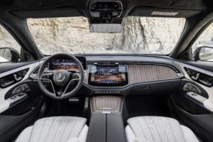 Le système de divertissement MBUX Entertainment Plus sera disponible sur la nouvelle Classe E All-Terrain. Il comprend les services Mercedes me connect et un forfait de données d’un fournisseur tiers. En France, le module de communication fonctionne avec la technologie sans fil 5G. Cette norme prend en charge des taux de transfert de données beaucoup plus rapides que le LTE/UMTS .