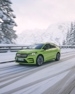 Grâce à de nouvelles batteries, les versions à transmission intégrale Enyaq 85X et RS offrent désormais des performances de charge encore meilleures avec une puissance de recharge sur les bornes rapides allant jusqu’à 175 kW. Charger la batterie haute tension de 82 kWh (77 kWh net) de 10 à 80% ne prend plus que 28 minutes, soit 8 minutes de moins qu’auparavant. Les puissance de recharge de l’Enyaq 85 reste de 135 kW.