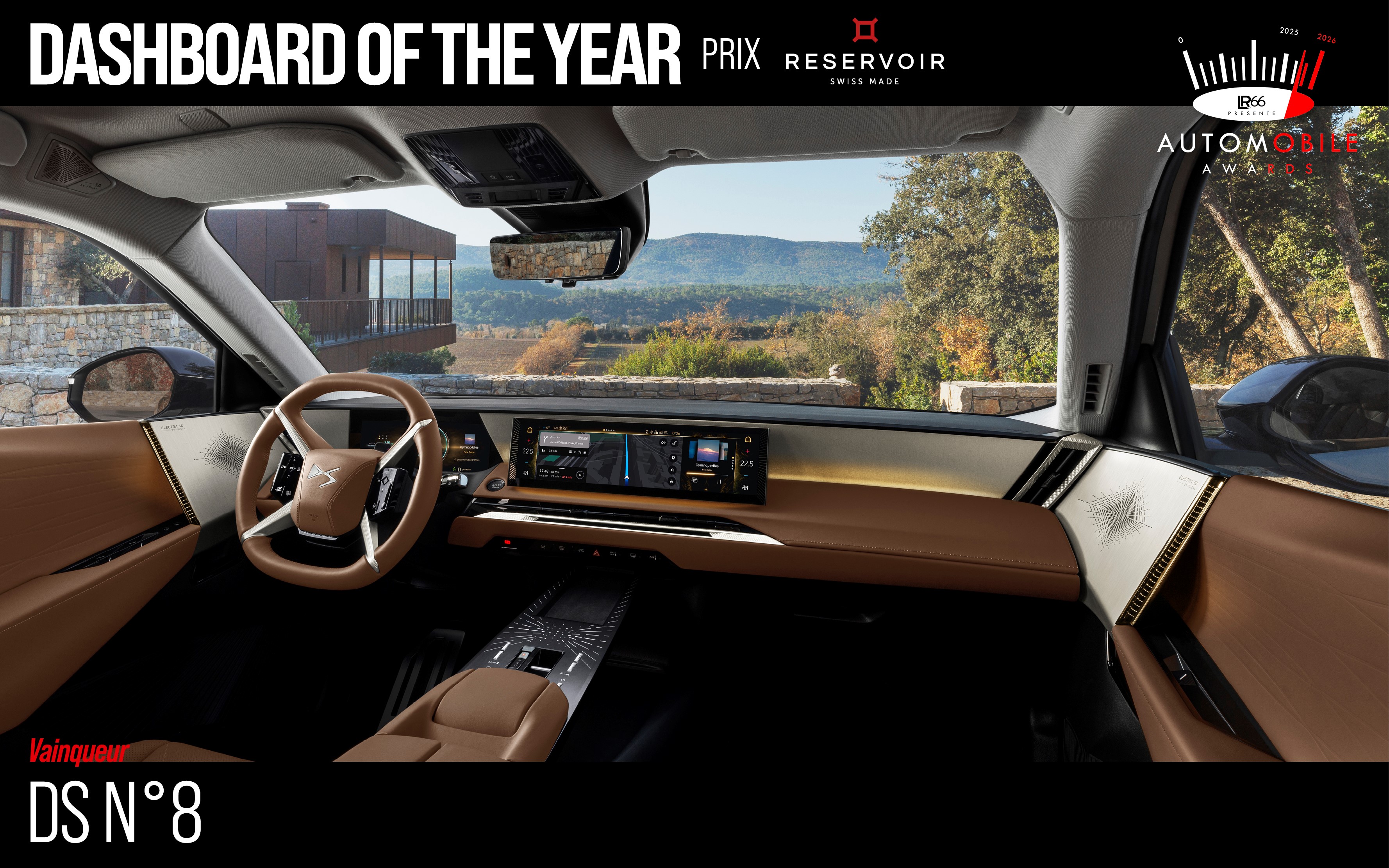 • DS N°8 reçoit le prix « Dashboard of the year » décerné par un jury constitué des membres de l’organisation des AUTOMOBILE AWARDS et le partenaire horloger RESERVOIR.
