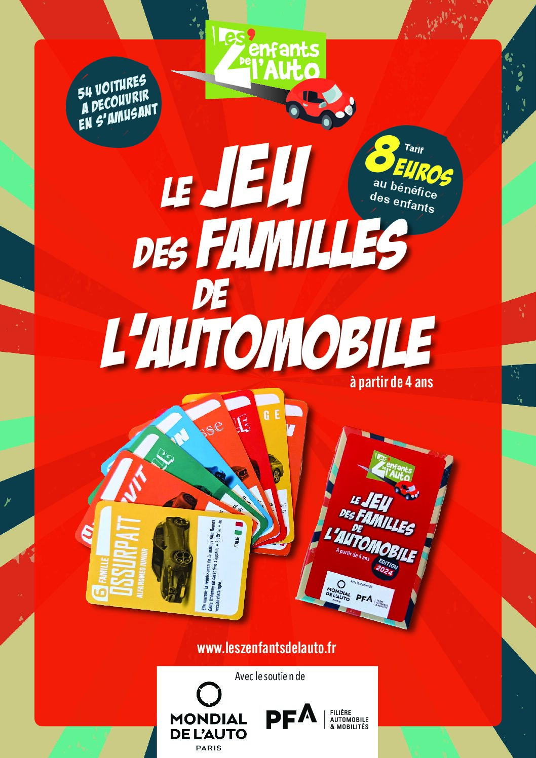 Réalisé en partenariat avec le Mondial de l’Auto, le Jeu des Familles de l’Automobile réunit les marques auto présentes sur le marché français. Il s’agit d’un jeu très simple qui, comme le jeu des 7 familles que l’on connaît, demande la constitution de familles de l’automobile, par typologies de modèles.