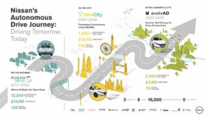 Nissan mène des recherches sur les « Autonomous Mobility Services » au Japon (Nissan Research Centre), au Royaume-Uni (Nissan Technical Centre Europe) et aux États-Unis (Nissan Advanced Technology Centre, Silicon Valley). Cela inclut les derniers essais du Serena AD « Easy Ride » à Yokohama, au Japon, où l’entreprise vise le lancement de services de mobilité autonome.