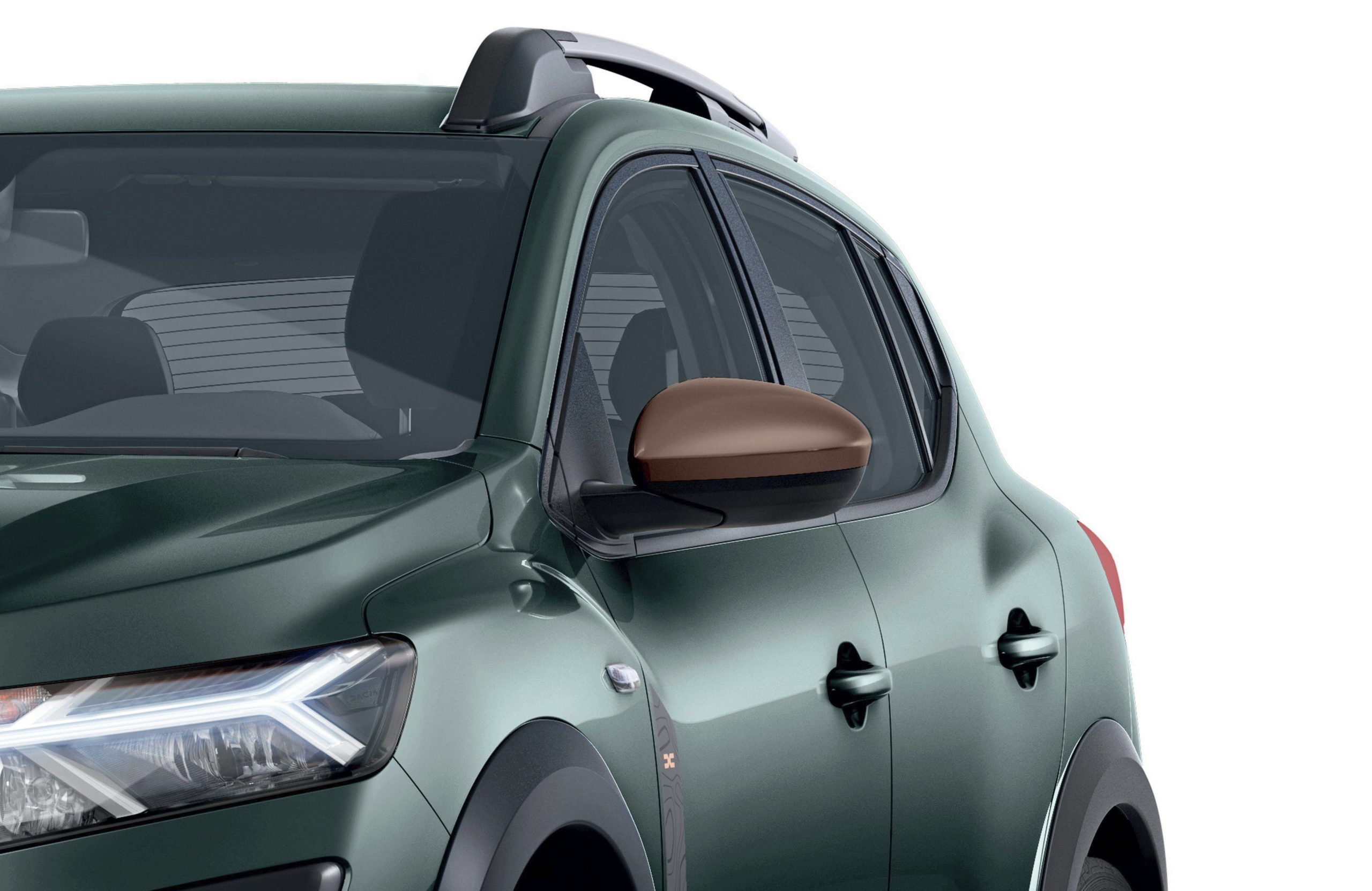 • Nom du modèle inscrit en Brun Cuivré sur les barres de toit (Stepway, Jogger et Duster) et décors Brun Cuivré sur les barres de toit Spring