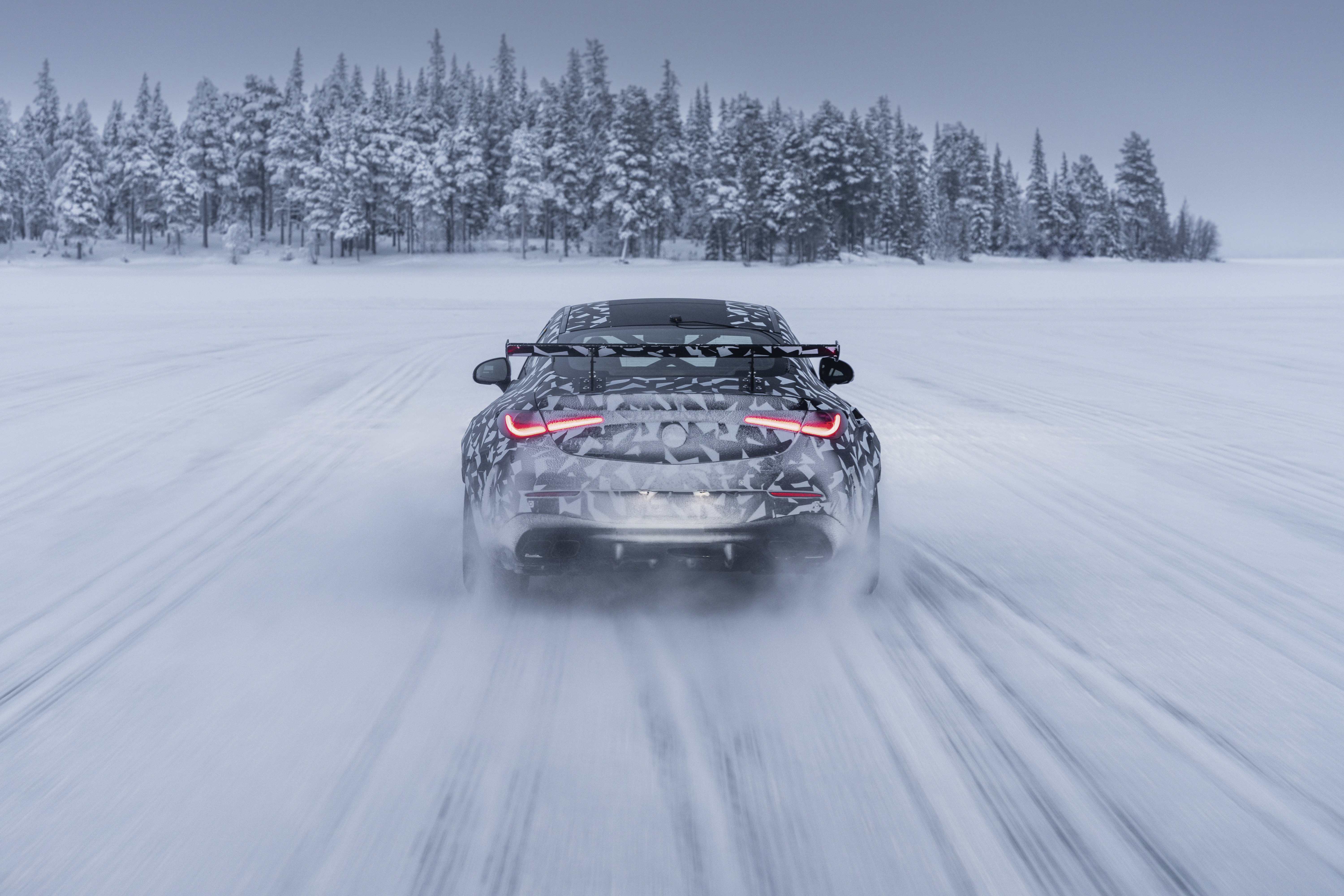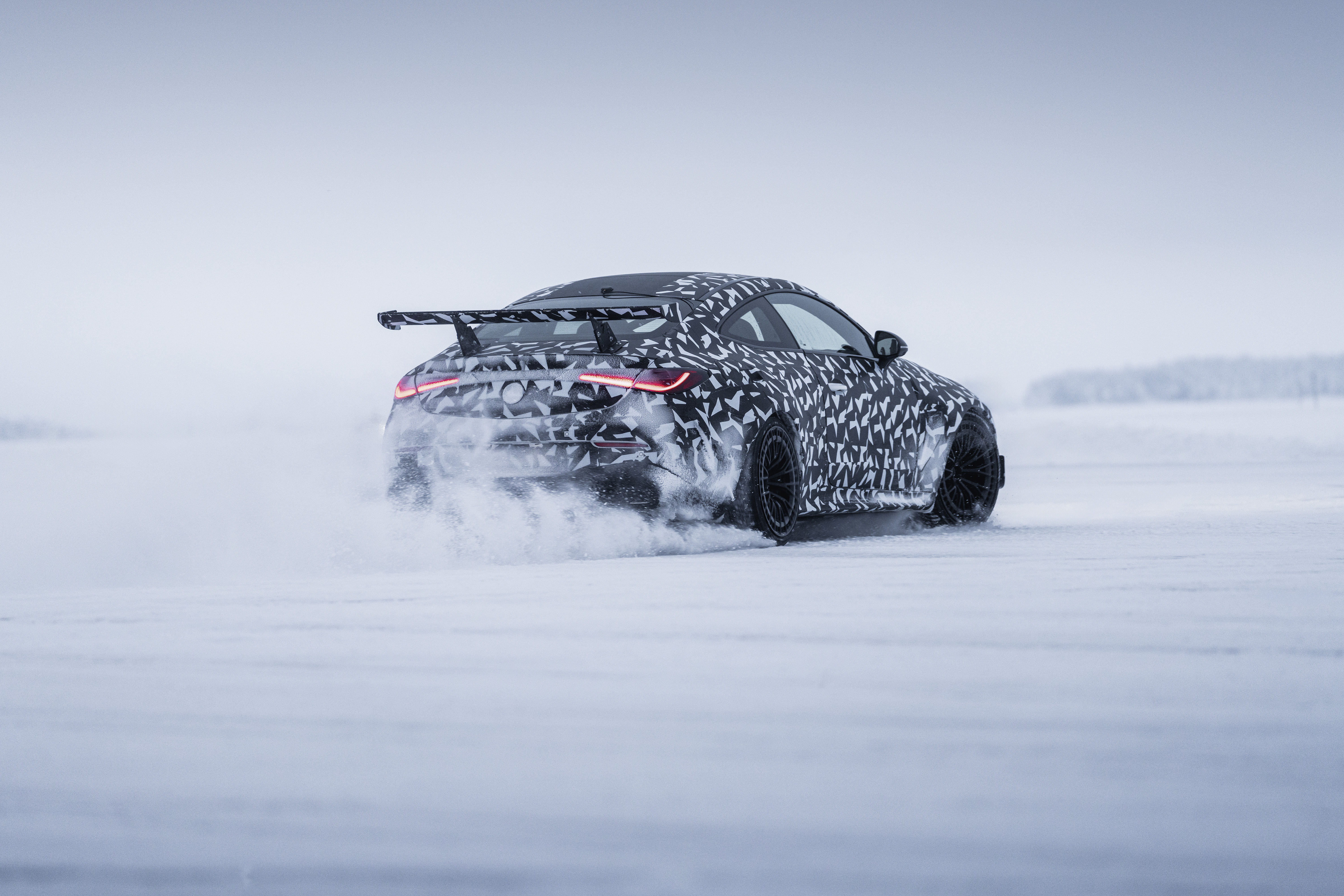 Même sous un camouflage complet et sous la faible lumière d’un hiver scandinave, une chose est immédiatement reconnaissable : une Mercedes AMG extrême fonce à travers la neige. Mercedes-AMG est actuellement en train de soumettre un nouveau modèle encore non annoncé à des tests intensifs près du cercle arctique, où il se distingue déjà par une présence remarquablement intransigeante.