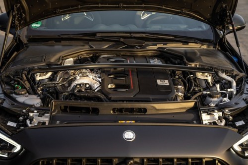 Le moteur, appelé en interne M139l (l pour installation longitudinale), est le premier moteur de série au monde à être suralimenté par un turbocompresseur électrique. Ce système innovant est directement dérivé de la technologie que l’écurie Mercedes-AMG Petronas F1 utilise avec succès depuis de nombreuses années dans la catégorie reine du sport automobile. Cette nouvelle forme de suralimentation garantit une réactivité particulière sur toute la plage de régime. Il en résulte une sensation de conduite encore plus dynamique de même qu’une efficience accrue. Par rapport aux modèles frères monté sur les C 43 4MATIC et SL 43, le turbocompresseur de la C 63 S est toutefois nettement plus grand. Cela permet d’augmenter le débit d’air et donc les performances. En outre, le moteur électrique intégré est entraîné par le système haute tension de 400 volts (48 volts dans les modèles 43).