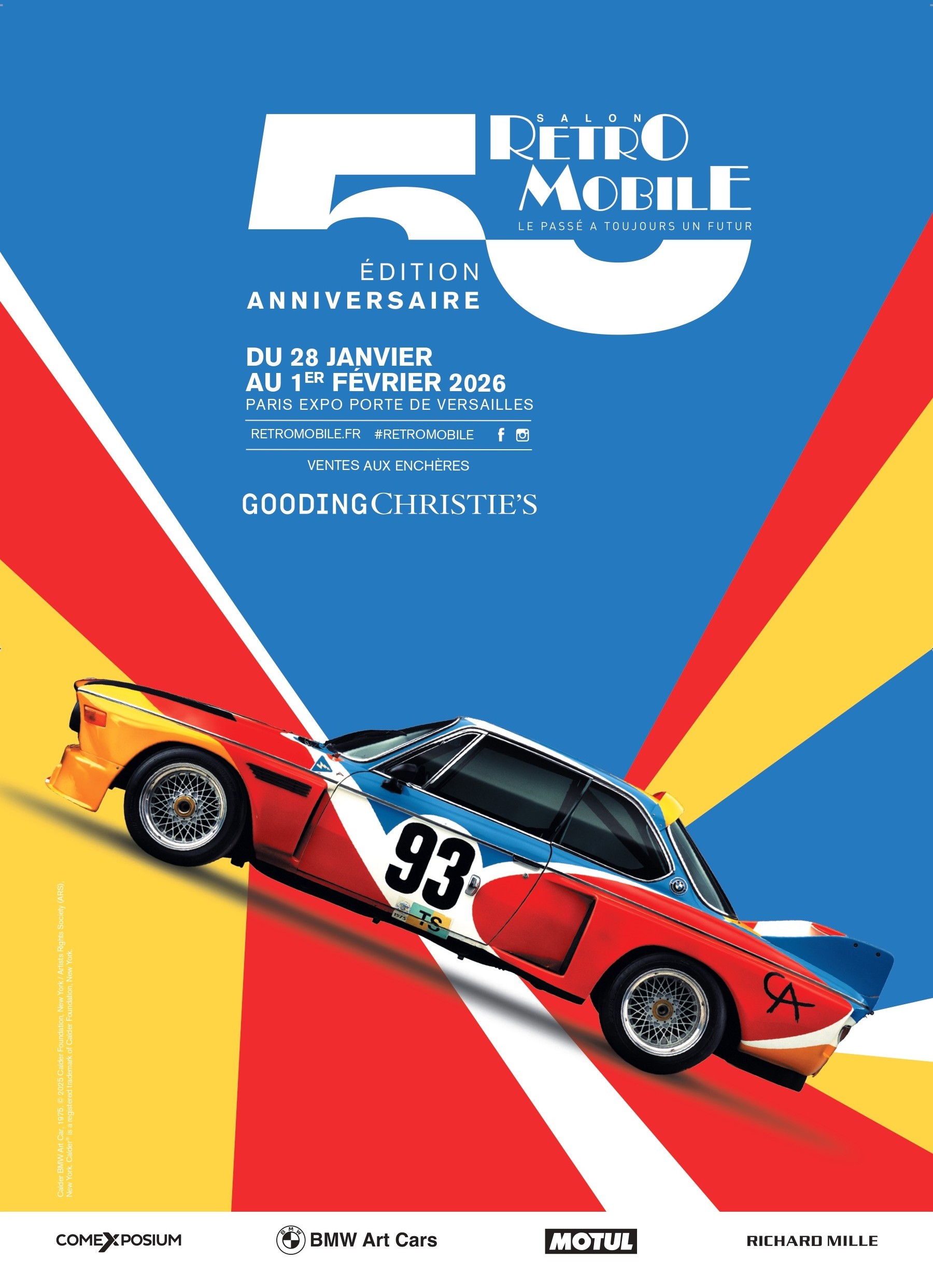 L’iconique BMW Art Car par Calder : star de l’affiche déjà collector. +++ Double anniversaire : les 50 ans de Rétromobile et des BMW Art Cars. +++ Rétromobile Paris du 28 janvier au 1er février 2026. ++