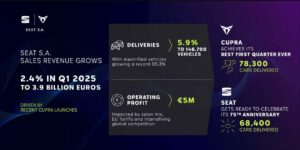 Le chiffre d’affaires de SEAT S.A. a atteint 3,895 milliards d’euros entre janvier et mars 2025, en hausse de 2,4 % par rapport au premier trimestre 2024 (3,803 milliards d’euros). Porté par le succès des modèles lancés récemment par CUPRA, ce chiffre représente un nouveau record pour l’entreprise au cours d’un premier trimestre. Un premier trimestre 2025 au cours duquel les livraisons ont également augmenté pour atteindre 146 700 véhicules, soit une hausse de 5,9 % par rapport à la même période en 2024 (138 600 véhicules).