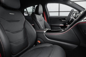 • Pack Sièges Performance AMG avec sièges optimisés pour les performances du conducteur et du passager avant avec renforts latéraux prononcés, options de réglage entièrement électriques et chauffage des sièges avec sellerie ARTICO aspect nappa / microfibre MICROCUT : 2 600€ TTC