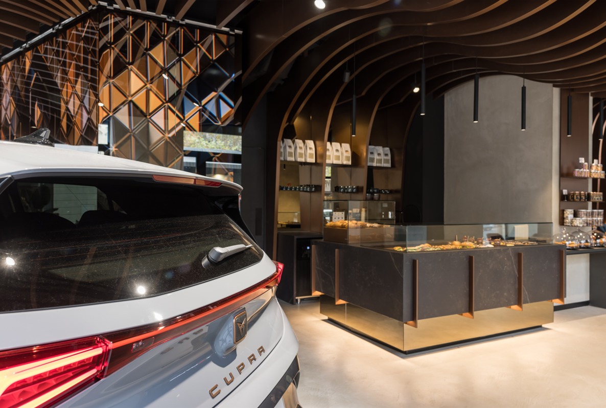 « L’idée est d’ouvrir ce lieu à tous, de proposer aux Parisiens comme aux voyageurs de venir y découvrir nos produits, mais aussi et surtout, de prendre un café ou déguster une pâtisserie signée Jeffrey Cagnes, créées pour ce lieu tout à fait atypique. Au-delà de la simple représentation d’une marque et de ses produits, le partenariat entre Jeffrey Cagnes et une marque automobile disruptive mise sur l’effet de la surprise » explique Robert Breschkow. Au cœur de cette nouvelle adresse, la pâtisserie Jeffrey Cagnes propose ainsi des gourmandises sucrées siglées CUPRA, de la crème catalane au Paris-Barcelone.
