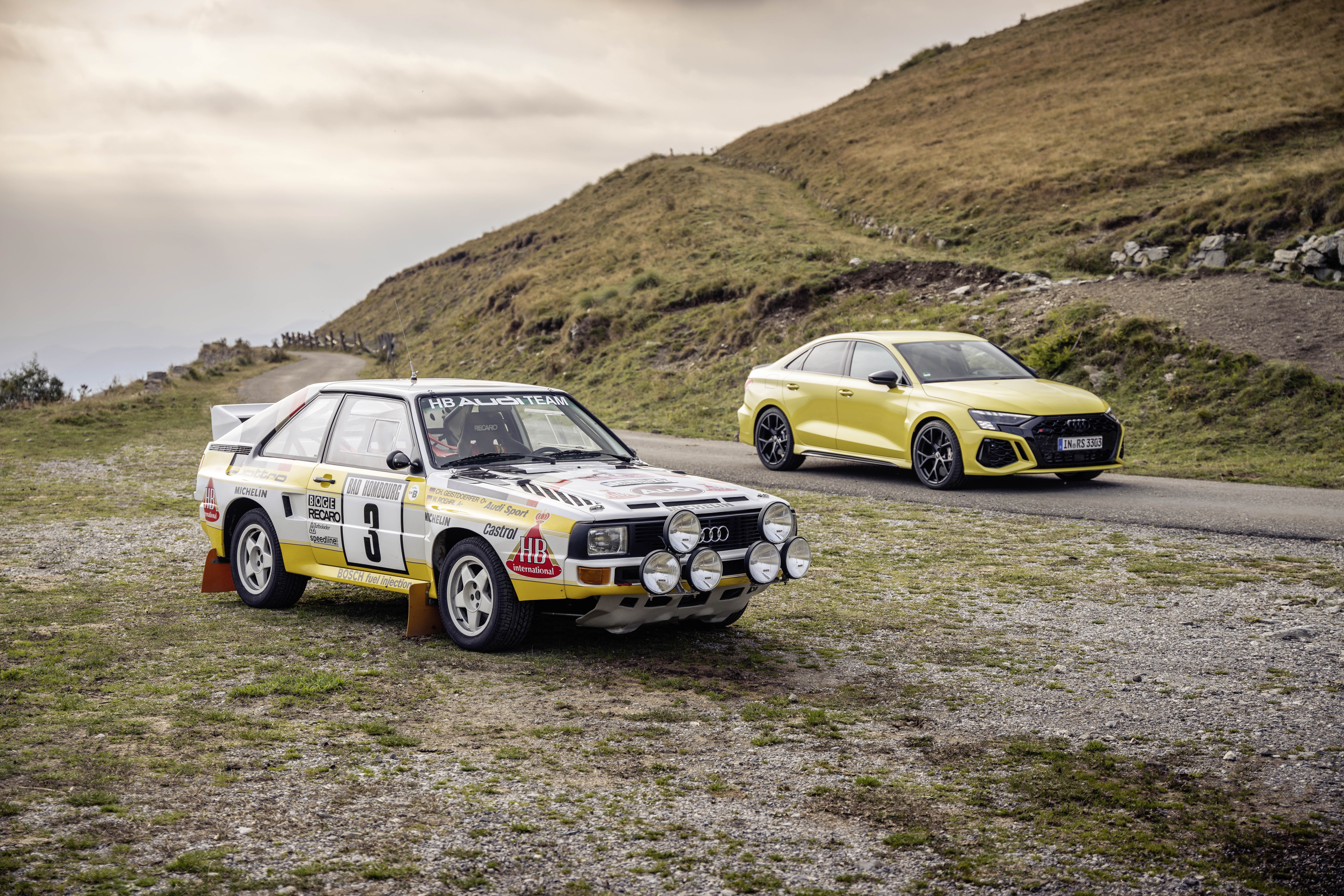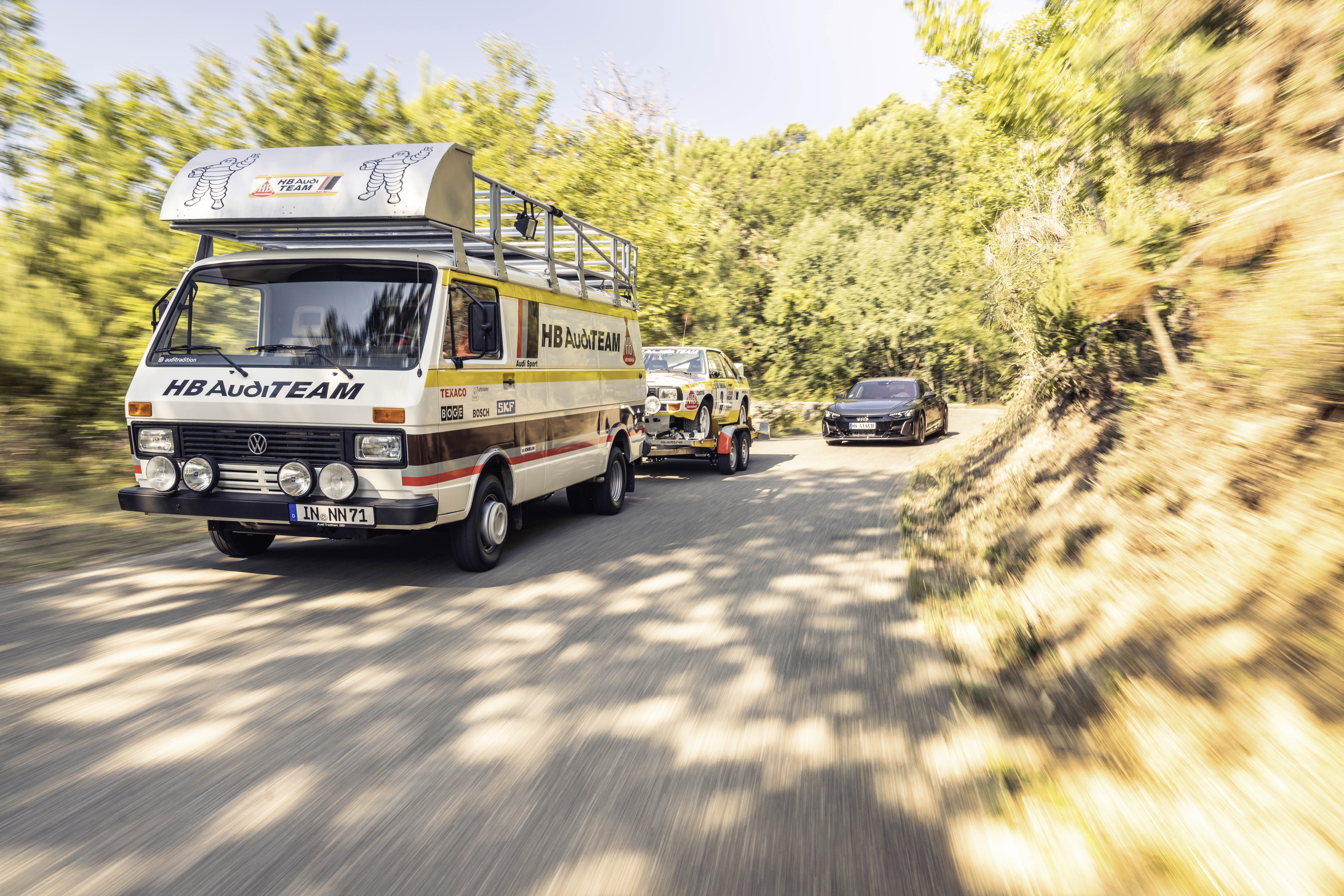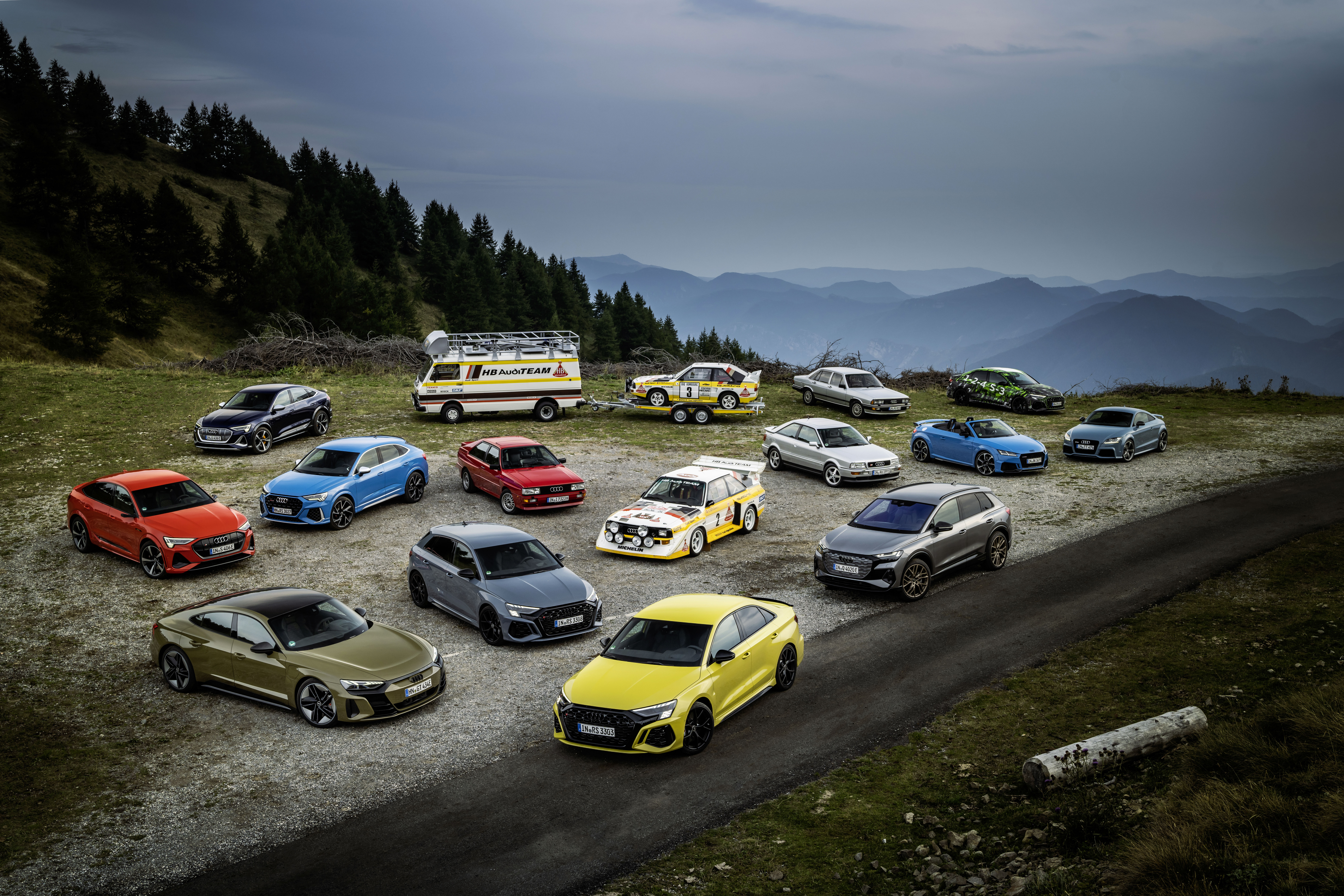 À ses débuts au Salon de l’automobile de Genève en 1980, l’Audi quattro a marqué la première d’une toute nouvelle transmission dans le secteur des véhicules particuliers : un système de transmission intégrale à la fois léger, compact et efficace, produisant peu de distorsion. C’est ce qui a rendu le concept quattro particulièrement adapté aux voitures de sport, et ce dès le départ. Et les nombreux accomplissements permis par plus de 40 ans de quattro sont par conséquant tout aussi impressionnants. À ce jour, Audi a produit près de 11,8 millions de voitures à transmission intégrale. Composante essentielle de l’ADN de la marque aux anneaux, la transmission quattro est appréciée des pilotes automobiles et des particuliers depuis les années 1980. De nombreuses publicités et campagnes célèbres, comme celle du pilote de rallye professionnel Harald Demuth au sommet d’un tremplin de saut à ski au volant de l’Audi 100 CS quattro, ont également contribué à son statut de légende. En intégrant le quattro électrique dans les modèles e-tron, Audi donne le ton à l’ère de la mobilité électrique.