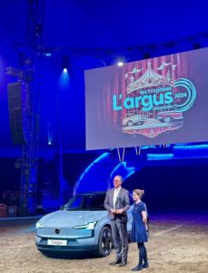 Le nouveau Volvo EX30 a été désigné Voiture premium de l’année lors de la cérémonie des Trophées de L’Argus, qui s’est tenue le 23 janvier 2024 aux Folies Gruss à Paris. Le prix a été remis à Yves Pasquier-Desvignes, président de Volvo Car France.