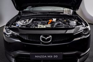 Fer de lance du programme d’électrification de Mazda, le Mazda MX-30 fut le premier véhicule de série 100 % électrique de la marque. Lancé en 2020, il est aujourd’hui rejoint par le MX-30 e-Skyactiv R-EV et sa technologie unique.