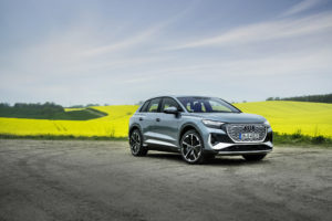 Tous les modèles Audi Q4 e-tron sont équipés d’une grande batterie qui fournit 77 kWh d’énergie nette (82 kWh brute). Une chimie de cellule optimisée a amélioré la puissance de charge en courant continu, de sorte qu’ils se rechargent de 10 à 80% en environ 28 minutes dans des conditions idéales. Les modèles quattro atteignent désormais une puissance de charge en courant continu maximale de 175 kW, tandis que les modèles à propulsion arrière atteignent un maximum de 135 kW.