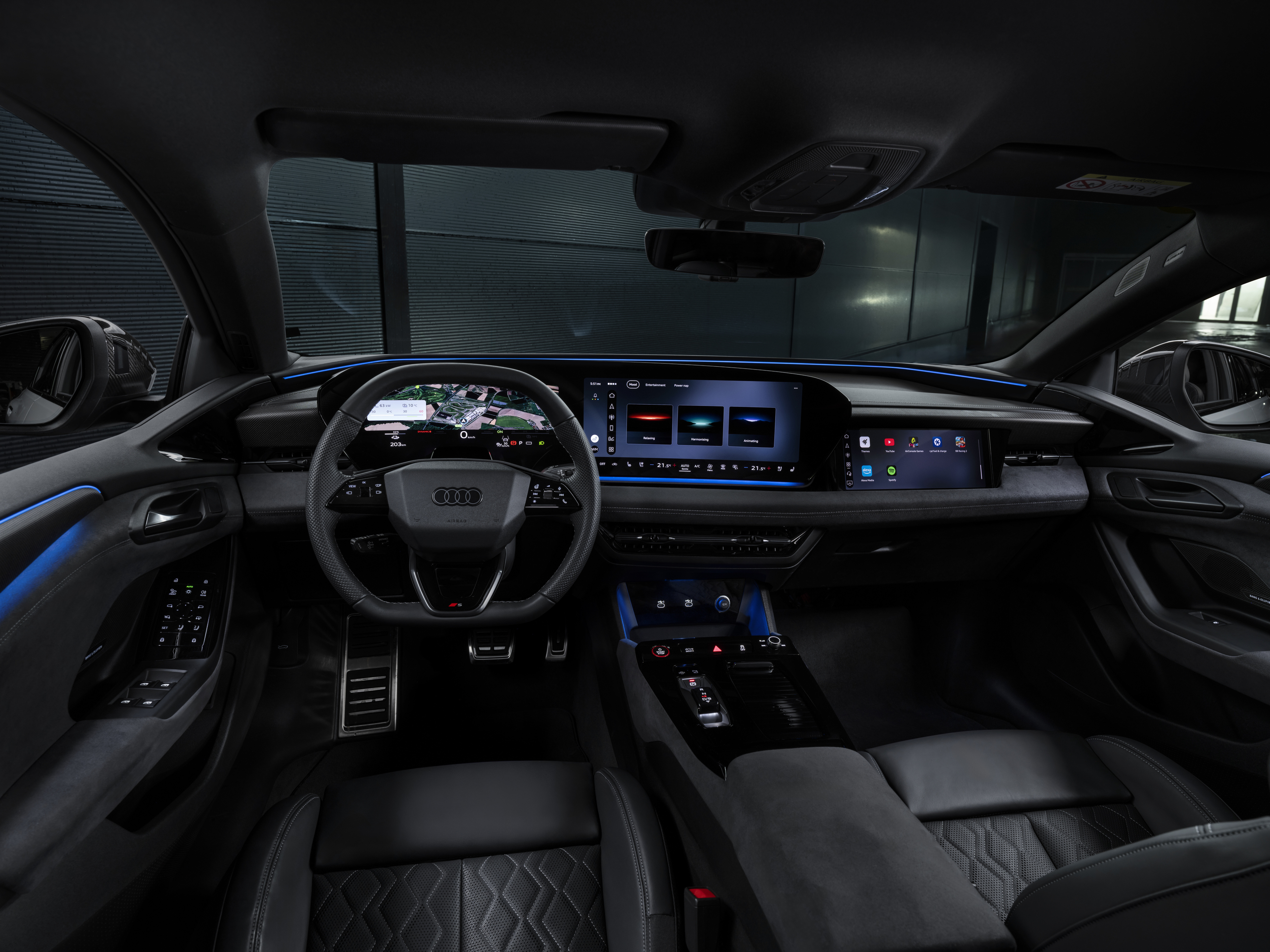 Avec les nouvelles « experience worlds », Audi introduit des scénarios d’ambiance personnalisés qui utilisent l’éclairage intérieur, le son, les fonctions de massage et les réglages de climatisation pour créer une atmosphère stimulante ou relaxante dans le véhicule. Les scénarios Activating, Relaxing et Harmonizing seront disponibles dès le début du changement d’année-modèle. Une fois activés, ils durent entre dix et vingt minutes et s’adaptent dynamiquement aux mouvements du véhicule pendant la conduite. Les modèles entièrement électriques proposeront également le mode Power Nap, qui crée une atmosphère calme et reposante pour les courtes pauses, par exemple lors de la recharge.