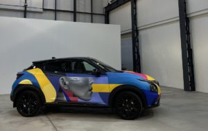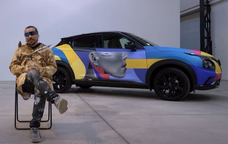 « Le Nissan Juke Hybrid a des concordances avec mon art qui mélange plusieurs techniques, plusieurs formes : entre abstraction géométrique et figurative. C’est aussi hybride car j’utilise le digital et l’humain en peignant à la main », témoigne SKIO. « Le but ici était de mettre en avant la couleur jaune de ce véhicule. Une teinte qui n’inspire que le positif. On a donc choisi les motifs et les couleurs en fonction de l’identité du véhicule pour garder ce caractère dynamique du produit. L’idée était de signifier le mouvement et que ce soit assez impactant à l’œil ».