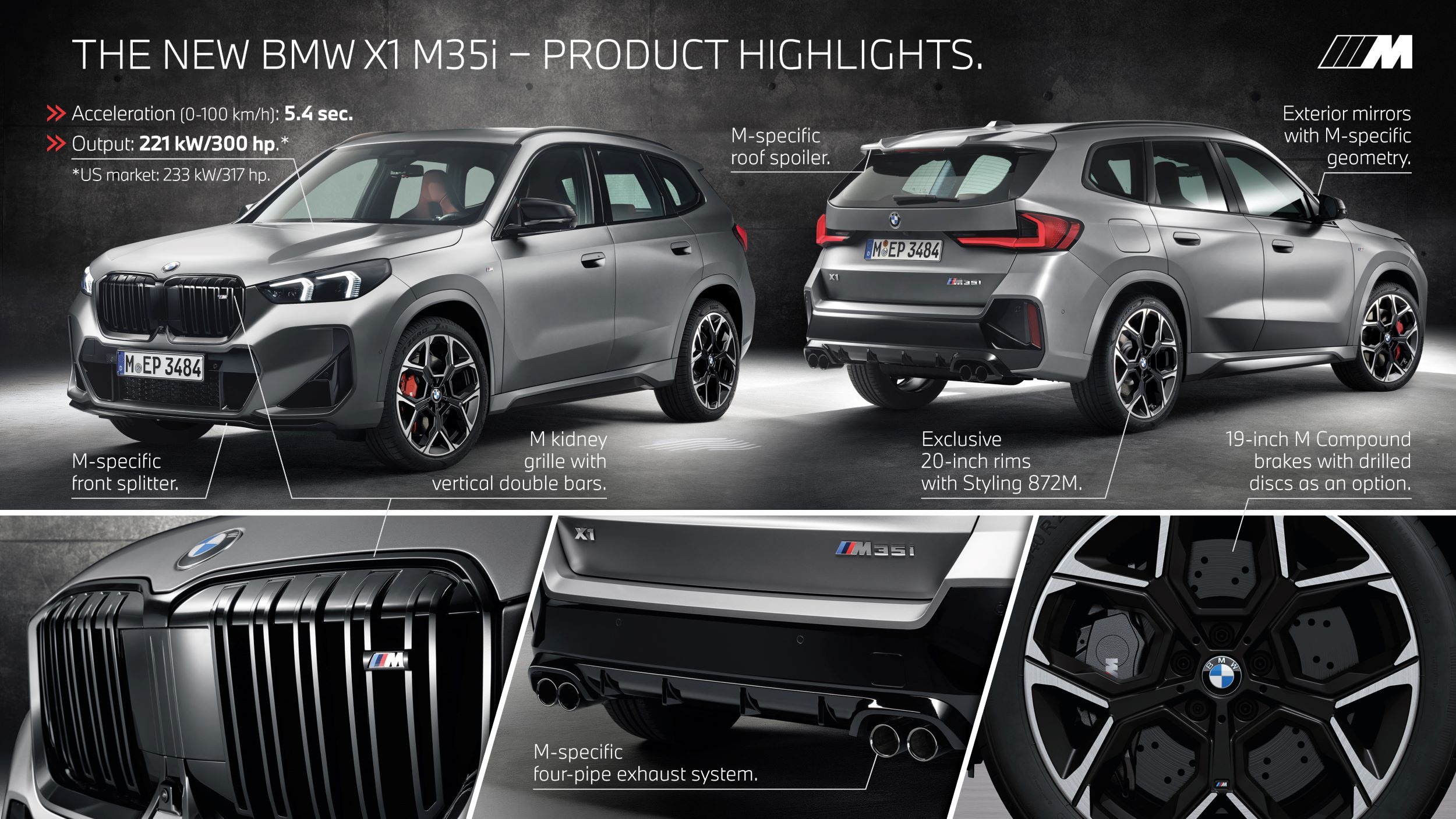 Un modèle performant au caractère M inimitable prend place au sommet de la nouvelle gamme BMW X1. La nouvelle BMW X1 M35i xDrive s’appuie sur le plaisir de conduire spontané qui est au cœur du concept du Sports Activity Vehicle (SAV) compact en y injectant le dynamisme, l’agilité et la précision qui font la renommée des modèles M. Son bloc quatre cylindres fait partie de la nouvelle génération de moteurs BMW Group Efficient Dynamics et utilise la technologie M TwinPower Turbo pour atteindre une puissance maximale de 300 ch.