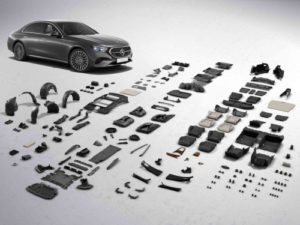 175 composants de la nouvelle Classe E, d’un poids total de 99 kilogrammes, peuvent être fabriqués en partie à partir de matériaux préservant les ressources (polymères recyclés et matières premières renouvelables). La microfibre MICROCUT est un exemple de matériau durable. Elle se compose de 45 % de matériaux recyclés et elle est utilisée pour divers éléments de revêtement intérieur. Pour la première fois, la mousse des sièges est fabriquée à partir de matériaux recyclés certifiés selon l’approche du « bilan de masse ». Les propriétés de ces matériaux sont identiques à celles du pétrole brut. Cela permet de réduire les besoins en ressources fossiles tout en conservant la même qualité de produit.