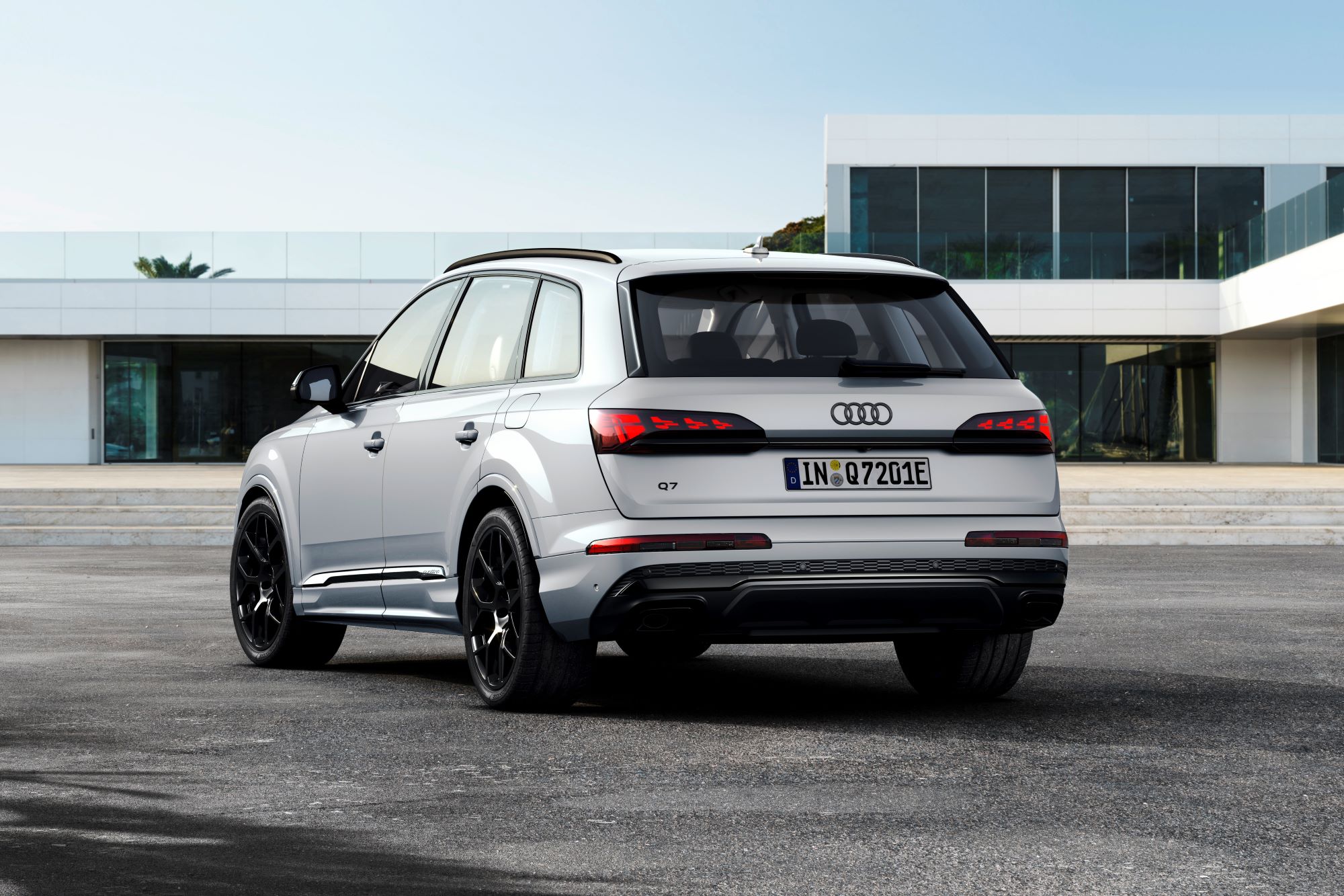 Les projecteurs Audi Matrix LED éclairent la route de série. Les projecteurs Audi Matrix LED HD avec l’Audi laser light en feu de route supplémentaire pour une portée de faisceau considérablement accrue sont disponibles en option. La nouveauté pour les phares haut de gamme réside dans les signatures numériques des feux diurnes. Elles confèrent aux Q7* et Q8* partiellement électriques une apparence caractéristique et unique, permettant à l’utilisateur de sélectionner l’une des quatre signatures lumineuses individuelles via le MMI. Pour la première fois, les véhicules sont également proposés en option avec des feux arrière OLED largement digitalisés, qui ont également des signatures lumineuses numériques. En outre, les feux arrière OLED numériques sont dotés d’une indication de proximité en liaison avec les systèmes d’assistance.
