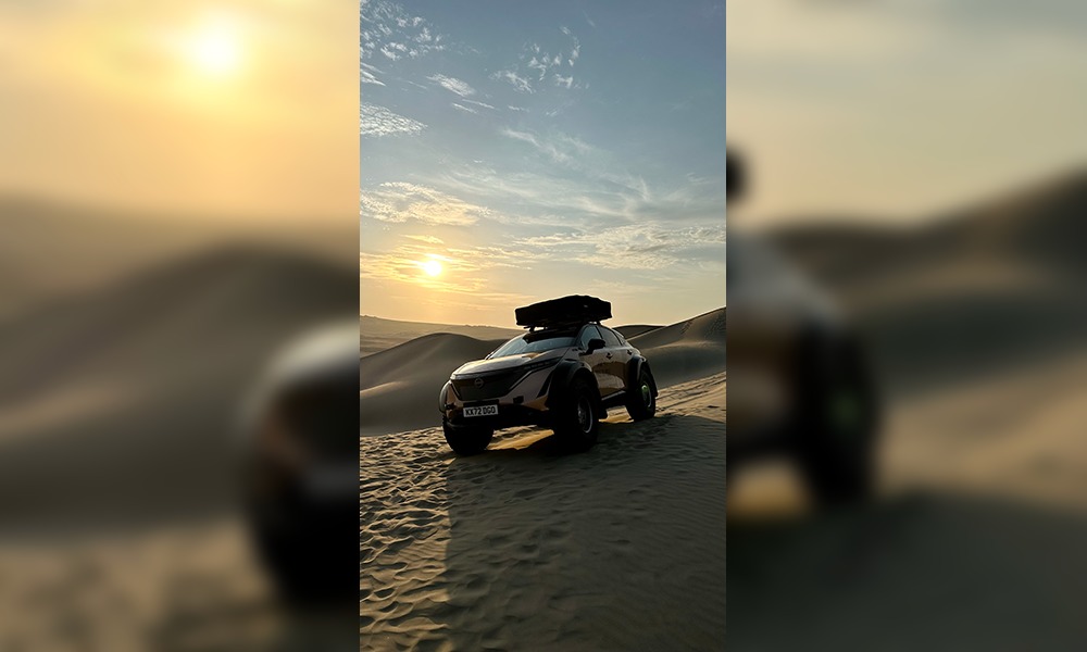Pour maîtriser ce terrain difficile, les pneus ont été dégonflés, redistribuant le poids pour gagner en traction et en adhérence sur cette mer de sable doré. La combinaison du système de transmission intégrale e-4ORCE de l’Ariya dans le sable plus épais et de la répartition presque parfaite de la puissance a permis d’obtenir une conduite douce et stable – un témoignage de la qualité, de l’ingénierie et de l’adaptabilité de la voiture.
