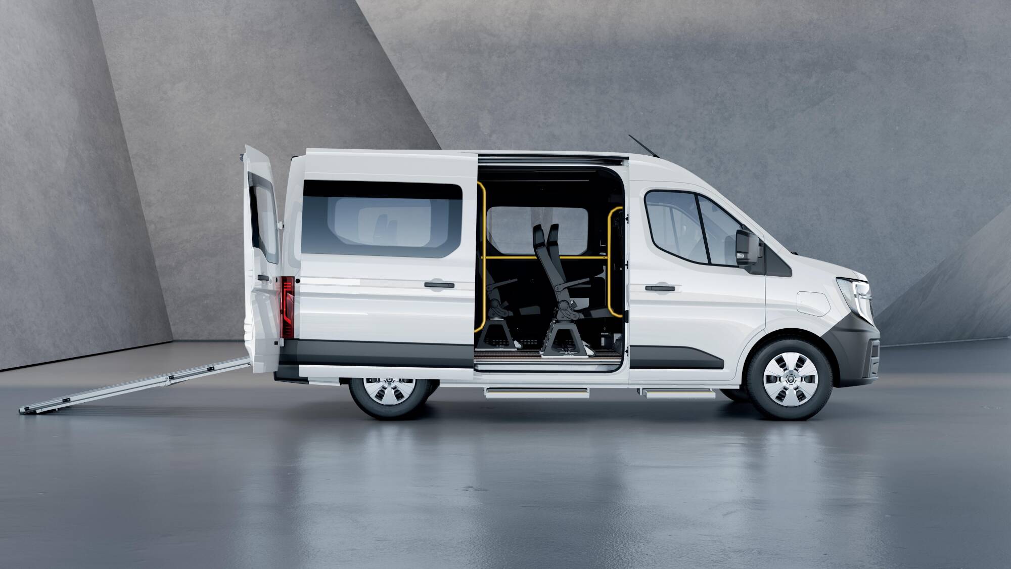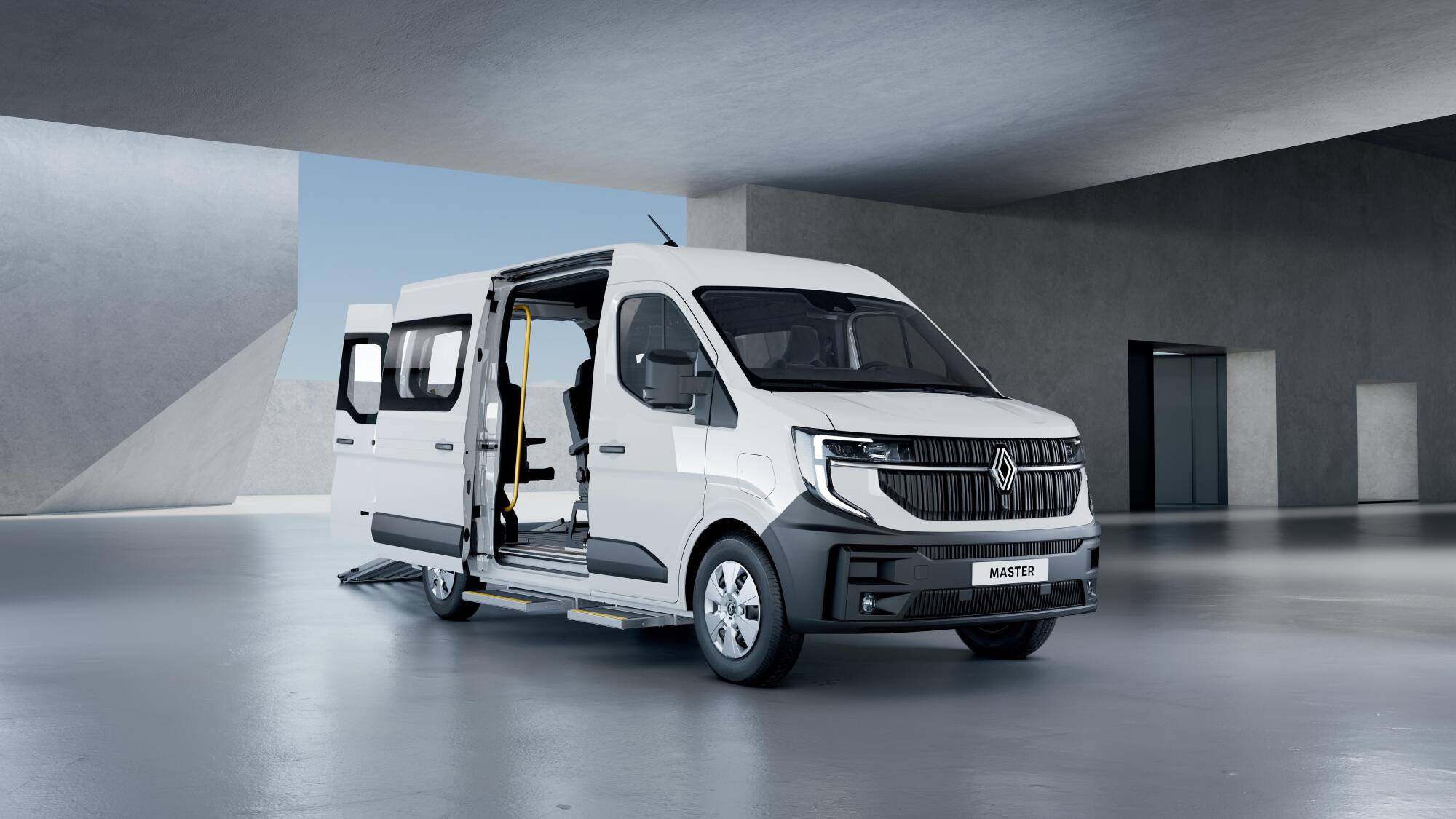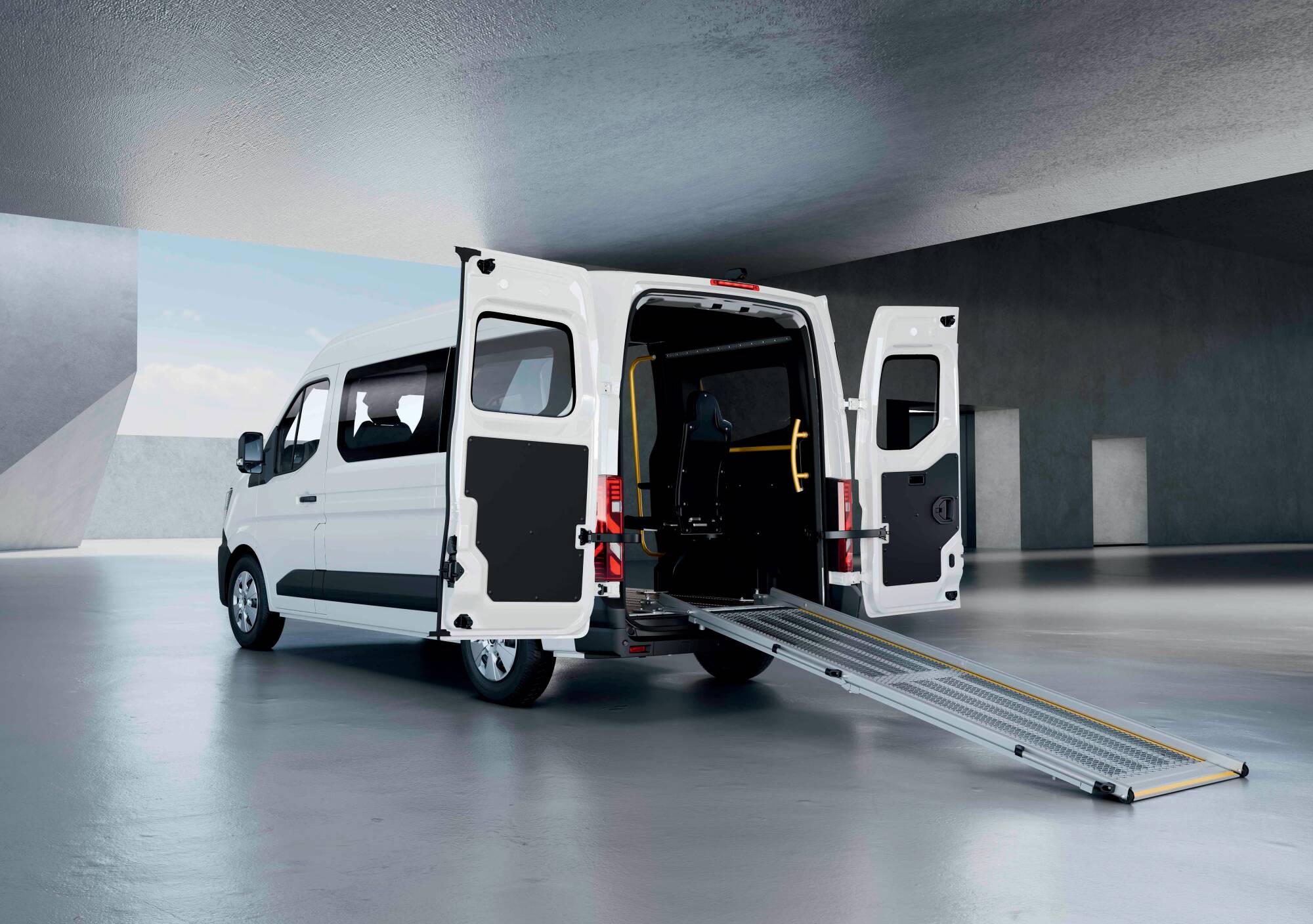 Renault Master TPMR peut accueillir jusqu’à 5 personnes en fauteuil roulant et jusqu’à 9 personnes au total, ce qui lui confère l’une des plus grandes capacités d’accueil du marché. Il propose jusqu’à 10 configurations définies en fonction du moyen d’accès, du nombre de passagers (valides + fauteuil roulant) et des options.