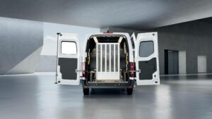 L’accessibilité de la personne en fauteuil roulant se fait par une rampe manuelle située à l’arrière du véhicule, dont le déploiement est assisté par des vérins, rendant l’opération simple et intuitive. Plusieurs options sont disponibles pour améliorer le confort des utilisateurs et passagers, telles que marchepied électrique, poignées d’accès, et éclairage additionnel.