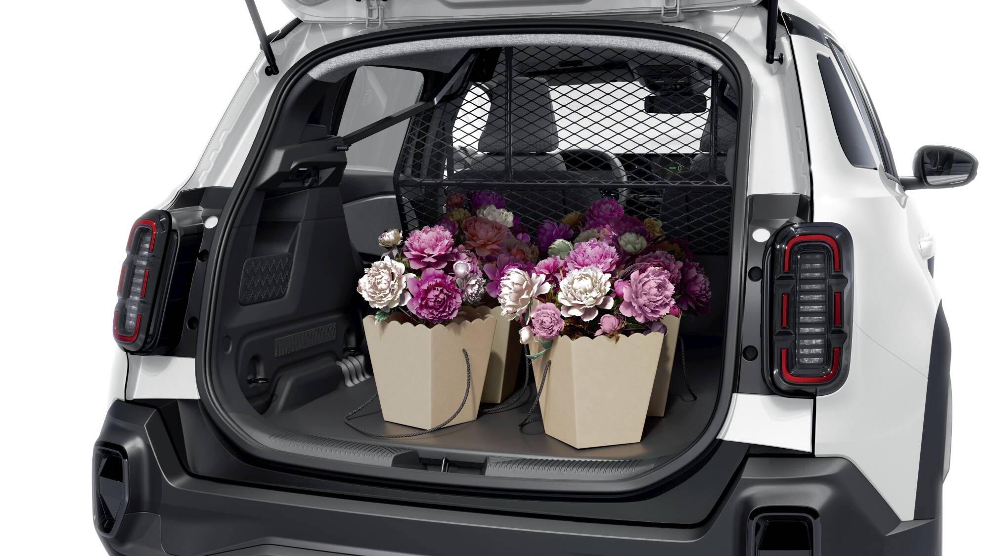 Ces deux modèles sont proposés en finition Advance pour la version Société Van et Evolution et Techno pour la version Société Réversible. Ils intègrent en lieu et place des sièges et ceintures arrière un bac thermoformé doté d’un système d’arrêt de charge et de crochets d’arrimage. La capacité de chargement est portée à 940 dm3 selon la norme VDA (soit 1 045 litres) – dont 36 dm3 (soit 55 litres) sous le plancher, un emplacement idéal par exemple pour le câble de recharge -, pour une charge utile jusqu’à 345 kilos et une longueur de chargement de 1,20 mètre. Une grille proposée en série sur la version Société Van et en option sur la version Société Réversible sépare la partie avant de l’habitacle de la zone de chargement. L’équipement inclut, en série, un cache-bagages et un tapis anti-dérapant.