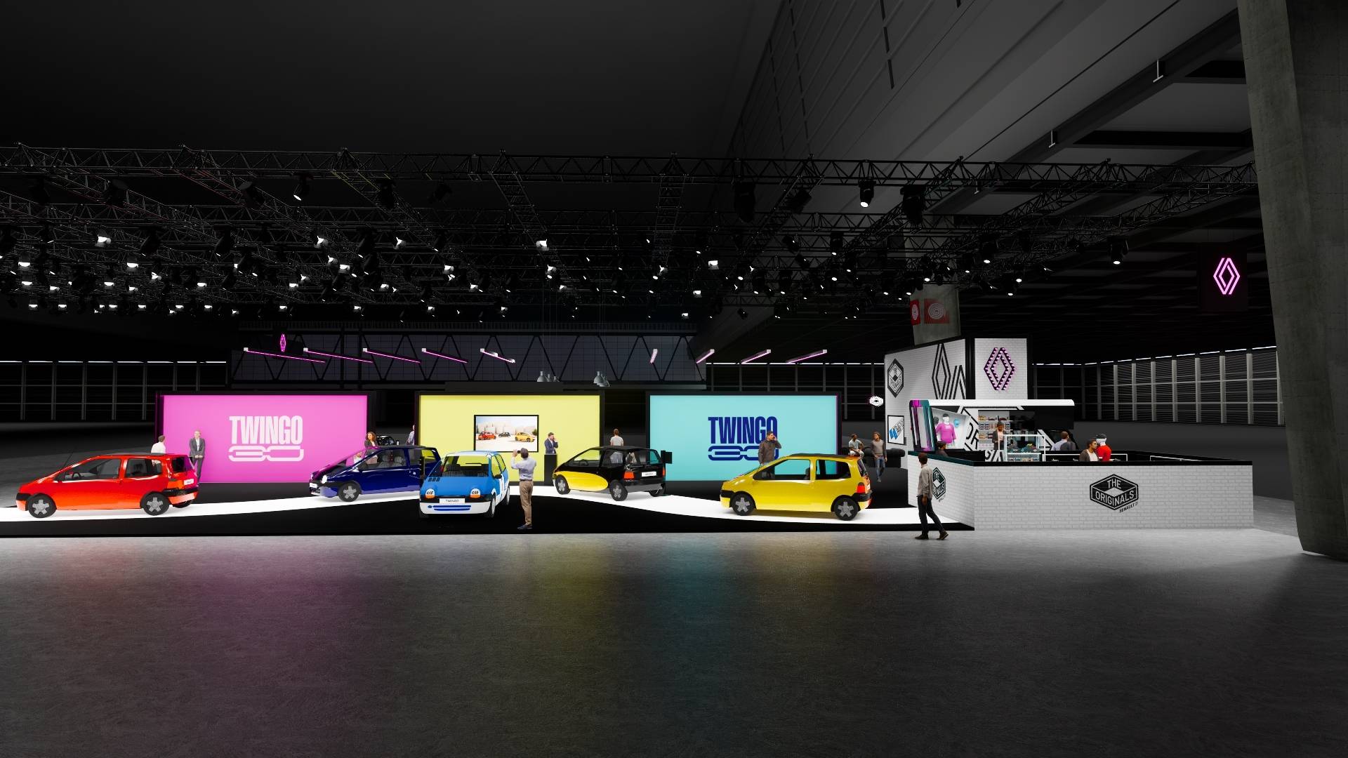 Une seconde zone sera entièrement dédiée à la Twingo, un modèle ayant séduit son public par ses coloris fun, et son design attachant. Célébrité de son époque, la première génération de Twingo a été vendue à plus de 2,4 millions d’exemplaires. Pour ses 30 ans, la marque décide de lui rendre hommage en présentant des visages différents, de la raffinée à la plus sage, en passant par la sportive avec une des toutes premières Twingo de 1993, Twingo Lecoq de 1995, Twingo Coupe de 1995 également, Twingo Benetton de 1996 et Twingo de 2004.