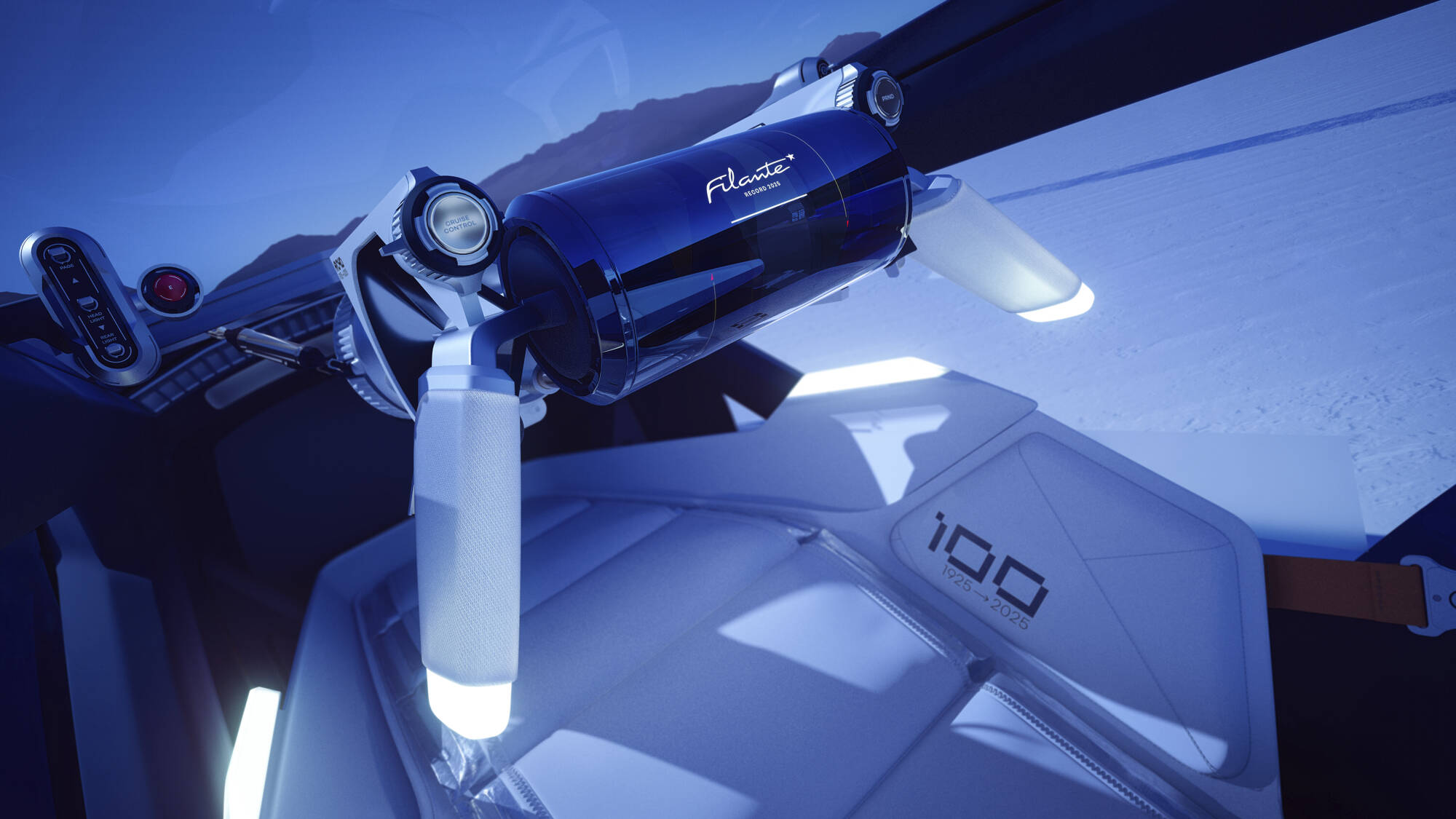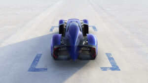 « Nous avons conçu ce véhicule comme une véritable sculpture en mouvement. Les lignes, inspirées des coques d’avions de chasse et des records de vitesse du siècle dernier, évoquent une quête de performance et d’élégance intemporelle. Chaque surface a été soigneusement travaillée pour capter la lumière et souligner une silhouette qui semble se fondre dans l’air. Les vitrages bleus et les harmonies de couleurs renforcent cette vision aérienne, tandis que l’ensemble du design a été pensé pour exprimer légèreté et fluidité. »