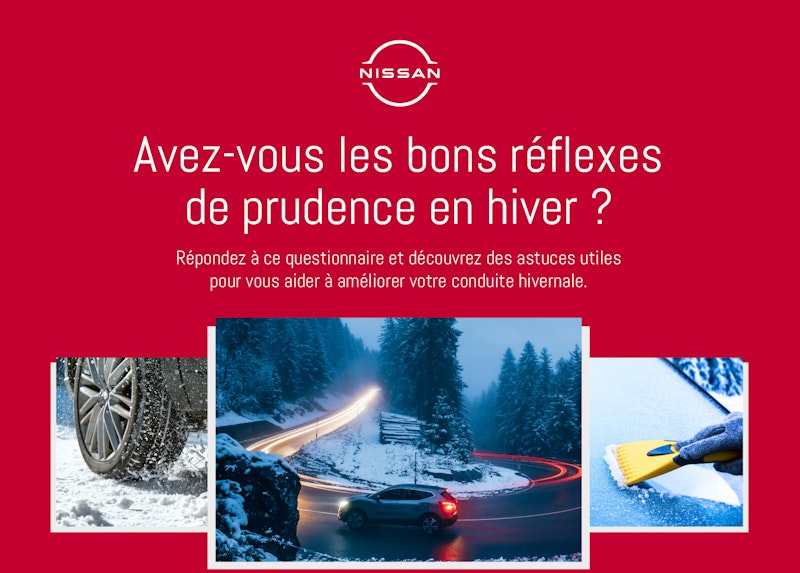 Les conducteurs les plus sereins à l’arrivée de l’hiver, et tous les autres, peuvent tester leurs connaissances en matière de conduite hivernale en répondant au quiz interactif Nissan. En plus de se renseigner sur la technologie de sécurité avancée dont ils peuvent bénéficier, quel que soit leur type de conduite, les automobilistes peuvent se familiariser avec les cinq règles d’or de Nissan pour une conduite hivernale en toute sécurité :