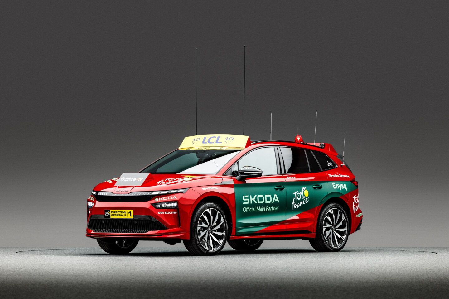 Le directeur du Tour Christian Prudhomme disposera de deux voitures rouges pour mener le peloton : les Škoda Enyaq et Superb iV. Ces centres de commandement mobiles, reconnaissables à leurs livrées distinctives, sont équipés de technologies de communication avancées permettant de suivre en permanence le déroulement de la course et d’échanger des informations avec les autres organisateurs.