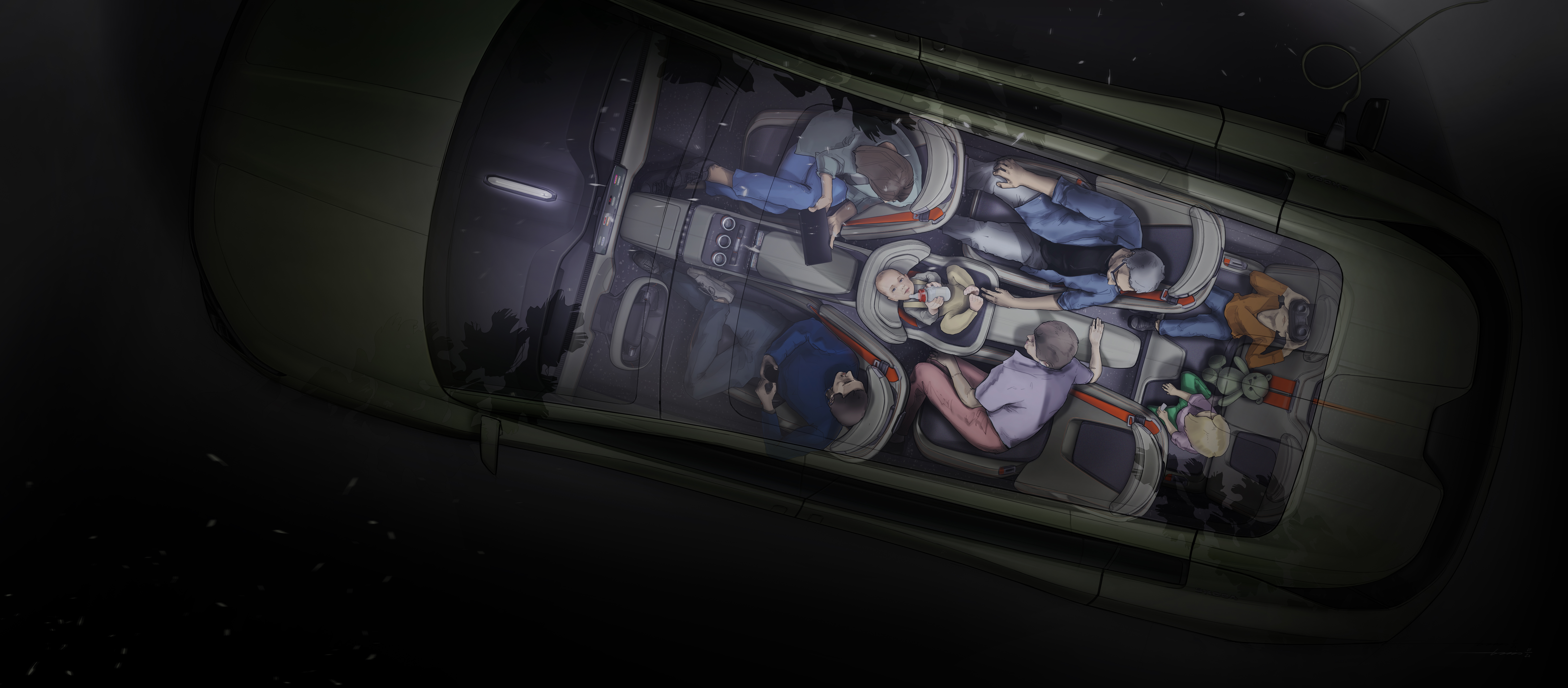 L’intérieur spacieux propose deux configurations distinctes qui offrent une nouvelle expérience de voyage avec deux modes : conduite et détente. En mode conduite, toutes les commandes sont placées dans leur position idéale et l’écran tactile central est aligné verticalement pour afficher toutes les informations pertinentes pendant la conduite. Le mode détente peut être activé lors de la recharge ou d’un arrêt pour se reposer. Le volant et le combiné d’instruments glissent vers l’avant et les sièges de la première et de la deuxième rangée se reculent pour une position assise encore plus confortable. Cette option offre aux passagers un maximum d’espace et de confort.