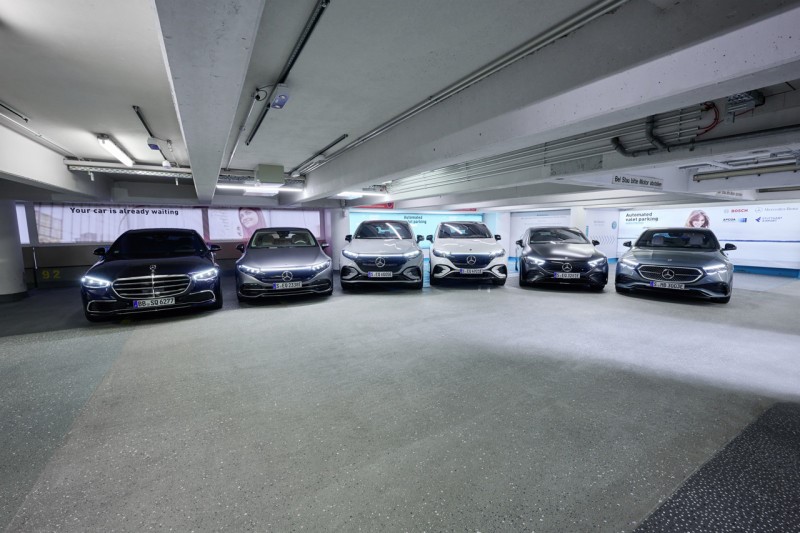 | Grâce à INTELLIGENT PARK PILOT, les nouvelles Classe E berline et break, les EQE SUV etEQS[1] SUV sont désormais prêts pour un stationnement hautement automatisé (SAE de niveau 4[2] ) dans le parking P6 de l’aéroport de Stuttgart.