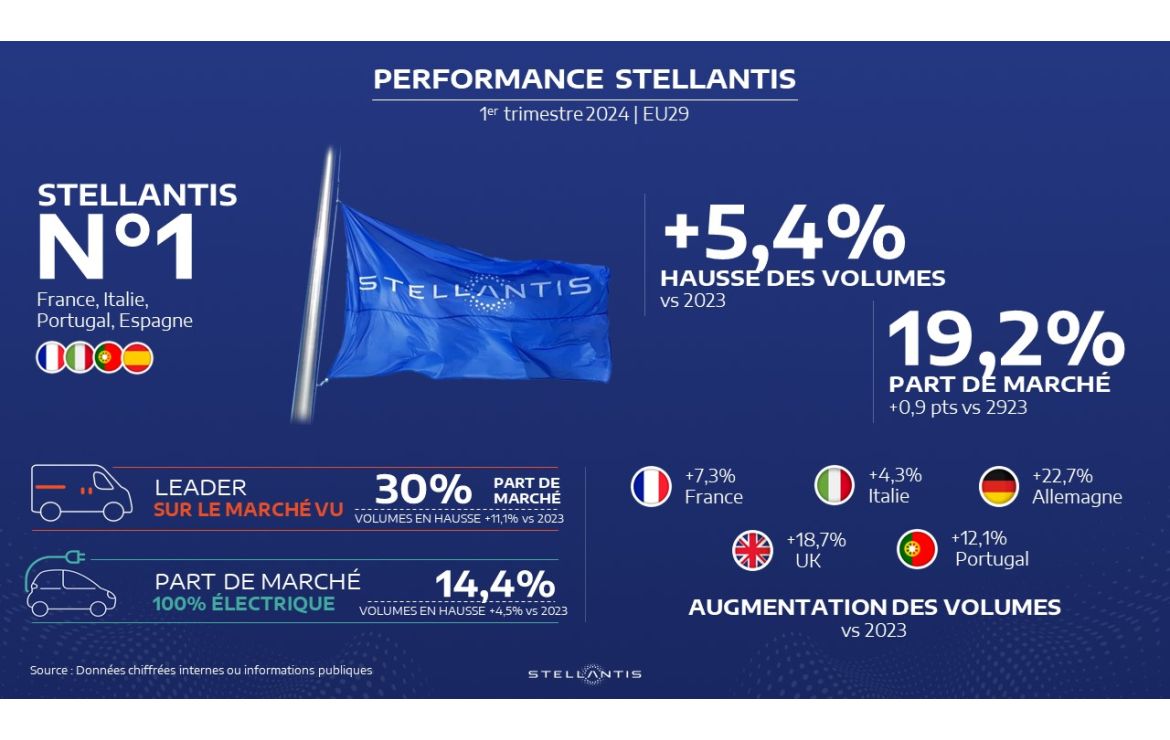 • Stellantis confirme le bon démarrage de l’année 2024 sur le marché européen (UE29) avec une hausse des ventes au 1er trimestre de 5,4% et une part de marché de 19,2%