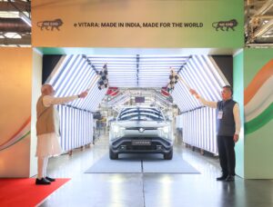 Le démarrage des expéditions du Suzuki e VITARA a été célébré lors d’une cérémonie qui s’est tenue le 26 août à l’usine Suzuki du Gujarat. L’événement s’est déroulé en présence du Président de Suzuki, M. Toshihiro Suzuki, et du Premier Ministre indien, M. Narendra Modi. Cet événement a également permis de marquer le début de la fabrication en Inde, chez TDSG (Toshiba Denso Suzuki Lithium-Ion Battery Gujarat Private Limited) de batteries pour les modèles hybrides Suzuki.