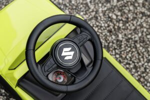 De part et d’autre d’un volant bidirectionnel, l’habitacle monoplace offre une remarquable visibilité périphérique particulièrement appréciable en franchissement ou lors des manœuvres. Le coffre de 0,45 l, intégré au plancher, pourra accueillir les objets essentiels du quotidien comme un doudou, un goûter, ou ce mystérieux caillou qui devait absolument être rapporté à la maison.