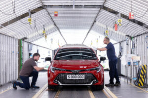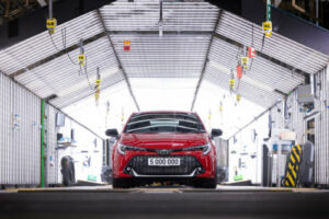 La Toyota Corolla GR Sport qui est la cinq millionième voiture produite dans l’usine de Burnaston est sortie de la chaine de montage il y a quelques jours. Burnaston fut la première usine Toyota en dehors du Japon à fabriquer des véhicules hybrides et continue d’être un centre d’excellence pour cette technologie. Aujourd’hui, 100 % de sa production est hybride.