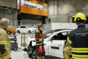 L’événement pilote « MB4Rescue » s’est récemment déroulé au Centre technologique pour la sécurité des véhicules (centre d’essais de collision) à Sindelfingen. Des instructeurs en personnel d’intervention d’urgence venus d’Allemagne, d’Autriche, de Suisse et des Pays-Bas, ainsi que des équipes de pompiers de presque toutes les usines allemandes Mercedes Benz AG ont participé à l’événement. Les sauveteurs ont pu s’entraîner sur des modèles actuels de Mercedes‑Benz tels que le CLA, EQE, EQS, GLE et CLE.