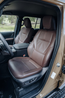 Les nouveaux sièges avant ont des dossiers plus fins, optimisant ainsi l’espace pour les jambes et les genoux des passagers arrière, et sont disponibles avec chauffage et ventilation intégrés. Les assises en uréthane plus épaisses répartissent la pression sur une zone plus large du corps du passager et sont conçues pour positionner le bassin selon un angle optimal, réduisant ainsi la charge sur les reins et les muscles. L’assise repose sur une couche inférieure dure, une construction qui aide à éviter que la posture du passager s’effondre lors d’un virage ou d’un changement de voie. Les renforts latéraux, plus importants, aident à maintenir le corps en place lorsque des forces horizontales sont ressenties, comme lors de la conduite sur des surfaces chaotiques.