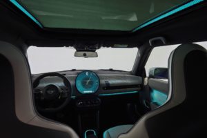 De plus, le toit panoramique en verre optionnel rend l’intérieur particulièrement lumineux et chaleureux. Dans l’obscurité, l’éclairage latéral est basé sur la lumière ambiante, contribuant ainsi à créer une atmosphère intérieure distinctive. Les sièges sont disponibles en version de base ou en version JCW, avec des panneaux latéraux qui sont revêtus d’un textile de haute qualité recouvrant également les commandes de réglages. L’accoudoir, monté sur le siège conducteur, offre encore plus d’espace au niveau de la console centrale. L’arrière de la citadine confère aux passagers un maximum d’espace et de confort. Grâce à la banquette arrière rabattable 60/40, le coffre de 200 litres, peut facilement être agrandi, pour offrir un volume de chargement pouvant aller jusqu’à 800 litres. Les câbles de recharge peuvent facilement y être rangés dans un sous-plancher.